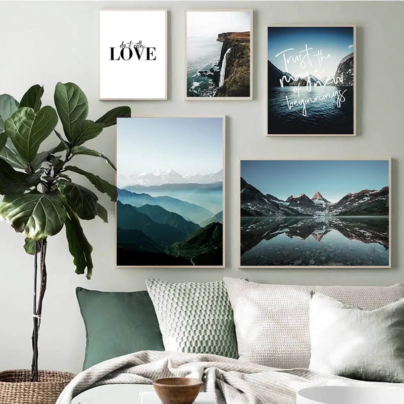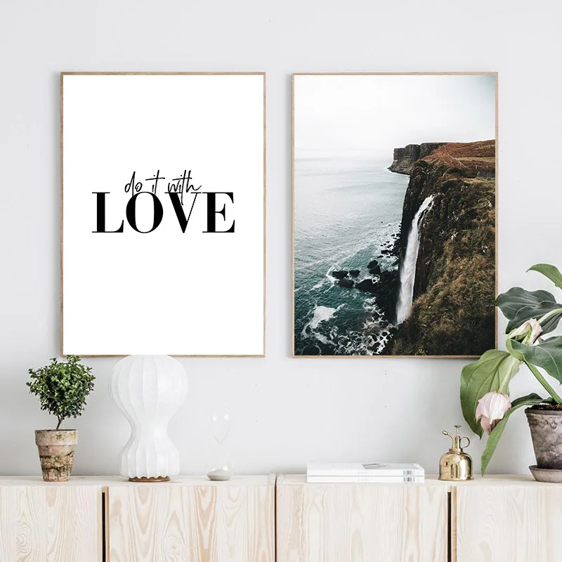 Постер с природным пейзажем в скандинавском стиле, с надписью Love, настенное художественное изображение на холсте, скандинавский Декор для дома