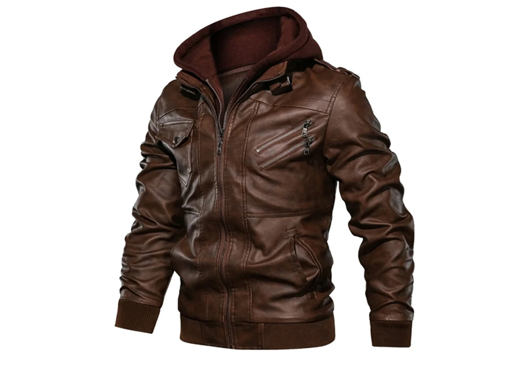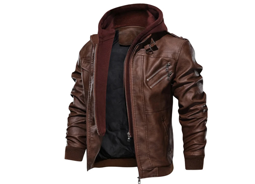 Мужская Осенняя кожаная куртка с капюшоном, мотоциклетная куртка из...