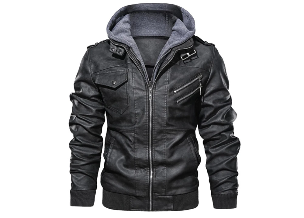 Мужская мотоциклетная кожаная куртка, модная ветровка с капюшоном, ...