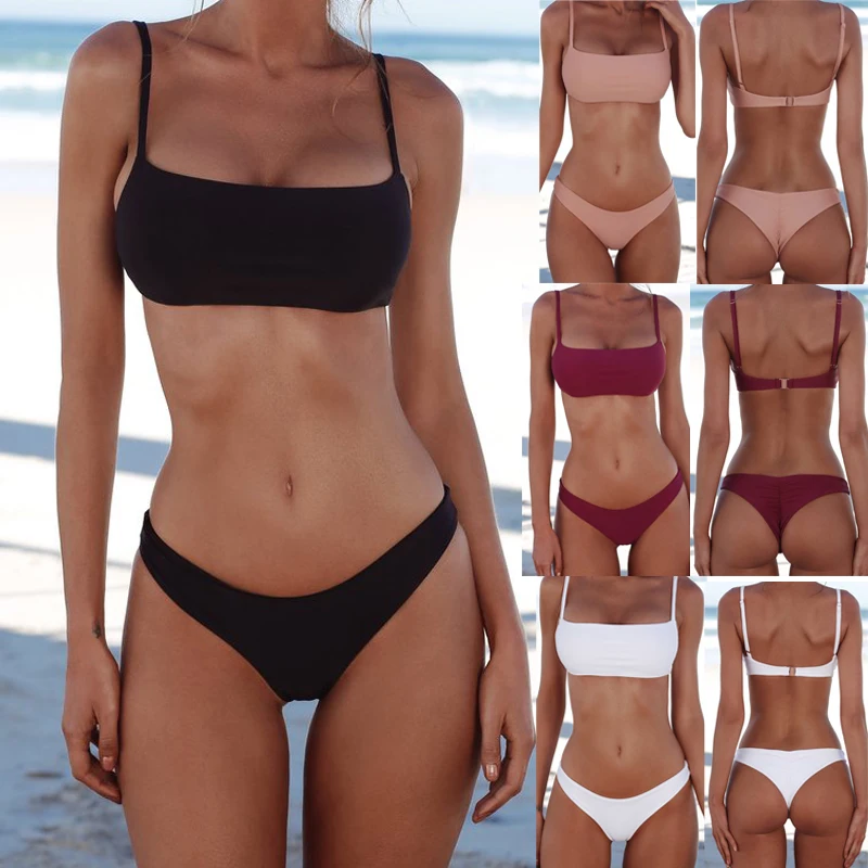 Название: популярный сексуальный комплект бикини из двух предметов, купальник-бандо, бикини, купальник для женщин, однотонный бикини, семейный купальный костюм, пляжная одежда, купальный костюм
