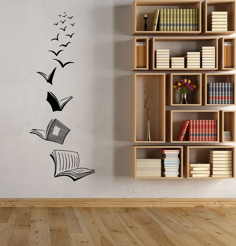 Виниловые наклейки на стену, открытая книга, чтение, школа, библиотека, класс, кабинет, спальня, домашний декор, художественная Настенная Наклейка
