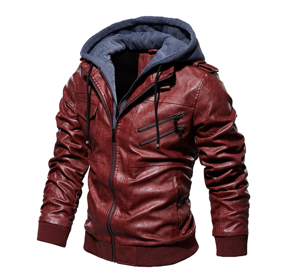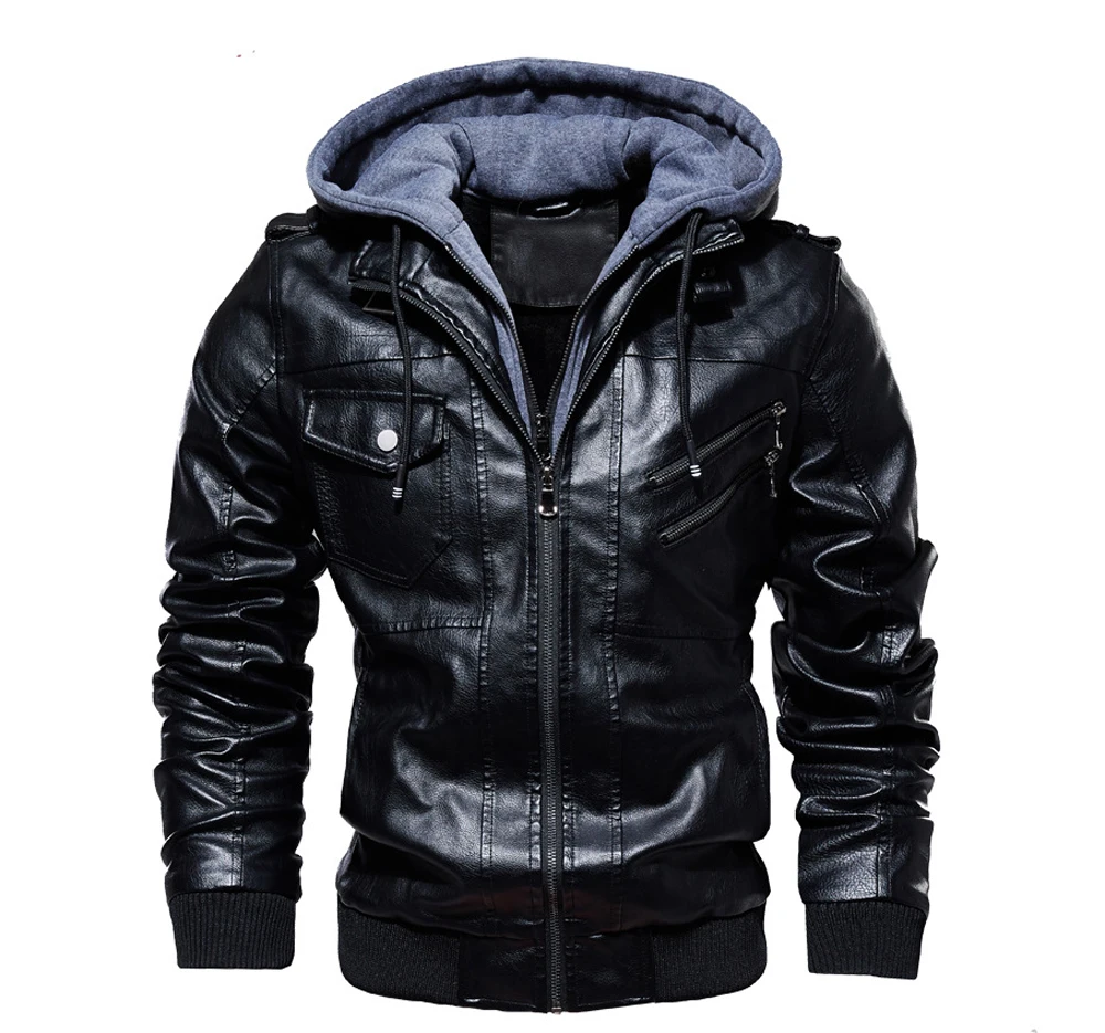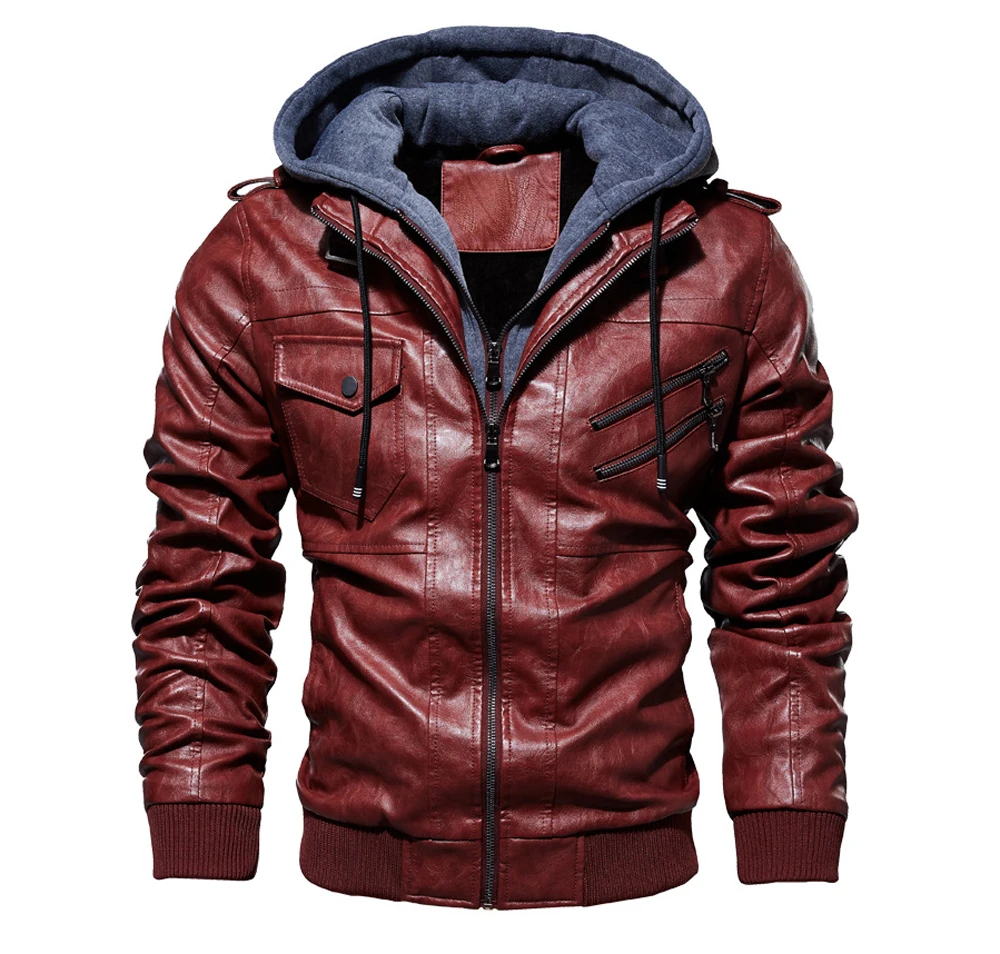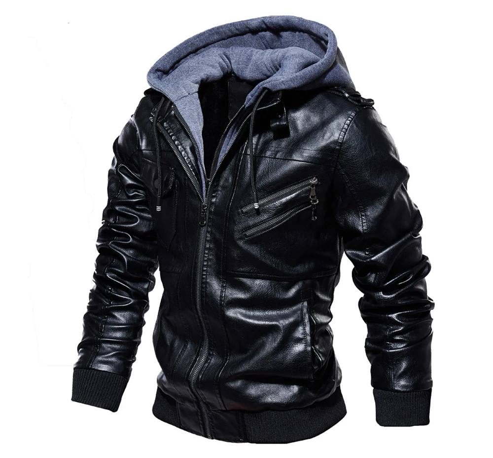 DIMUSIзимние мужские кожаные куртки; Повседневные мужские мотоциклетные кожаные пальто с капюшоном; Мужские деловые байкерские Кожаные Куртки из искусственной кожи