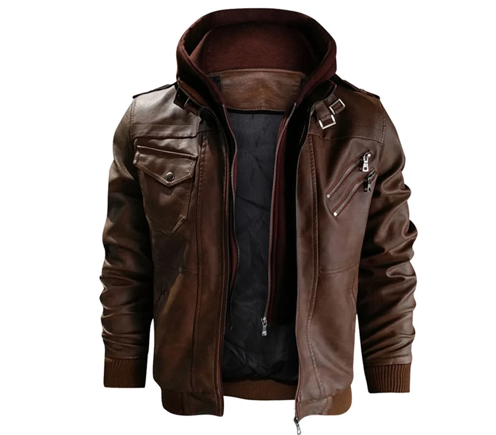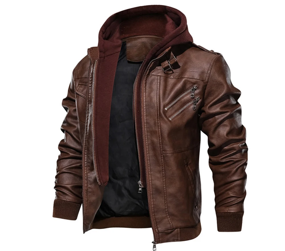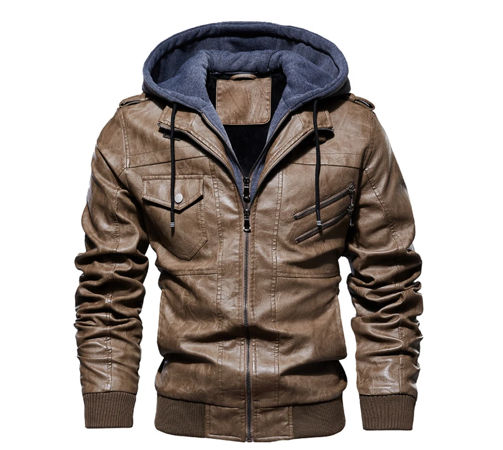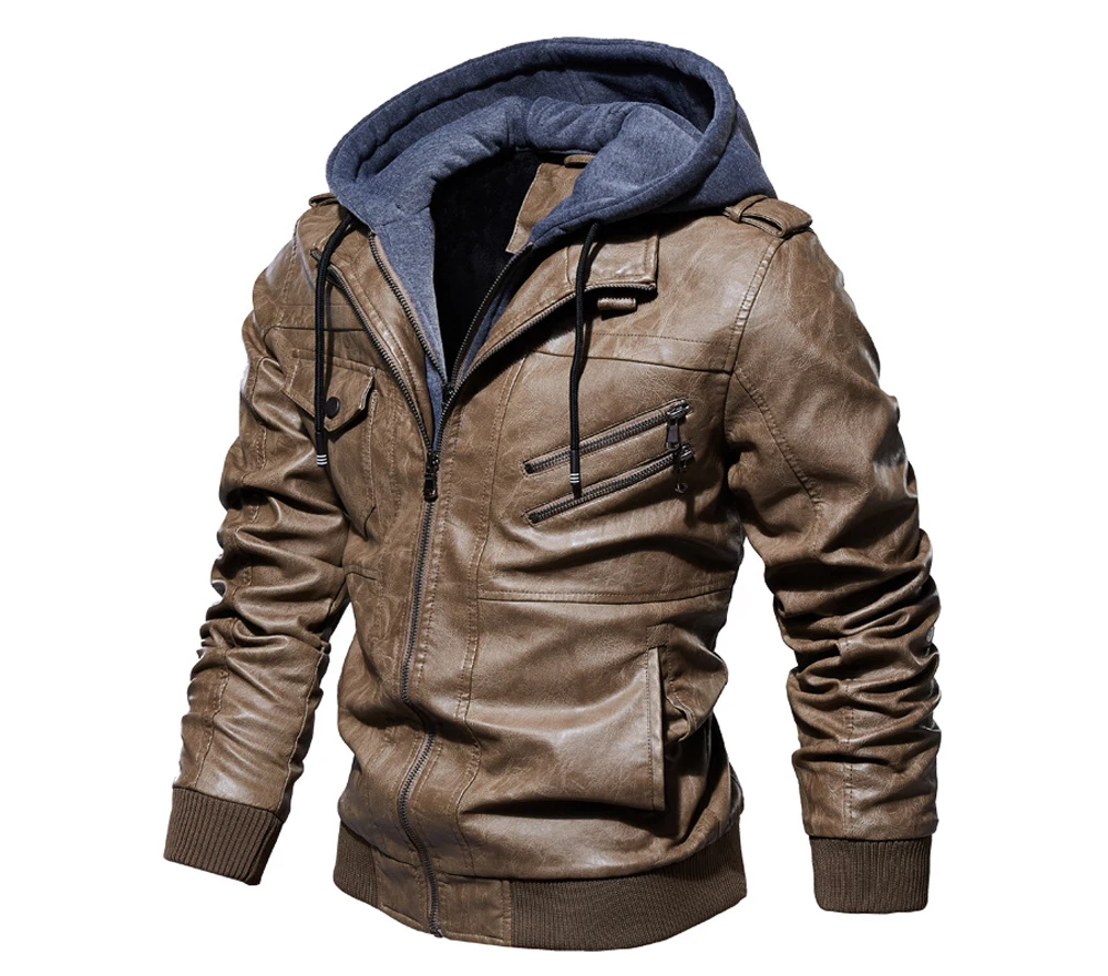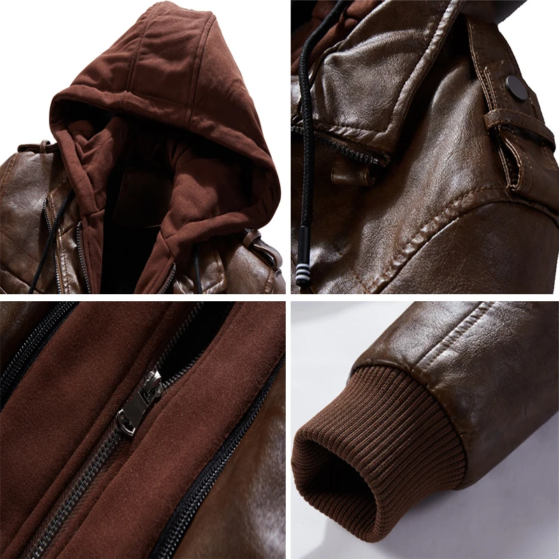 DIMUSIзимние мужские кожаные куртки; Повседневные мужские мотоциклетные кожаные пальто с капюшоном; Мужские деловые байкерские Кожаные Куртки из искусственной кожи