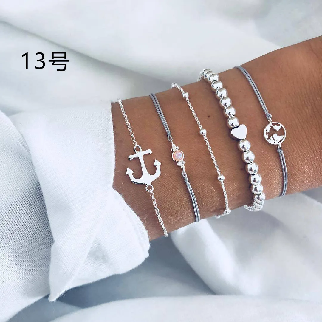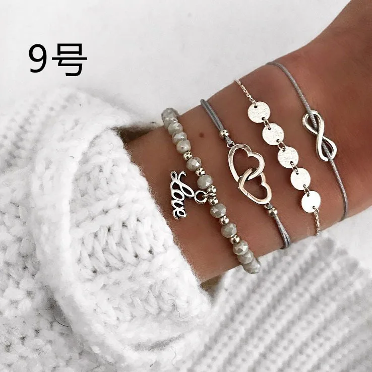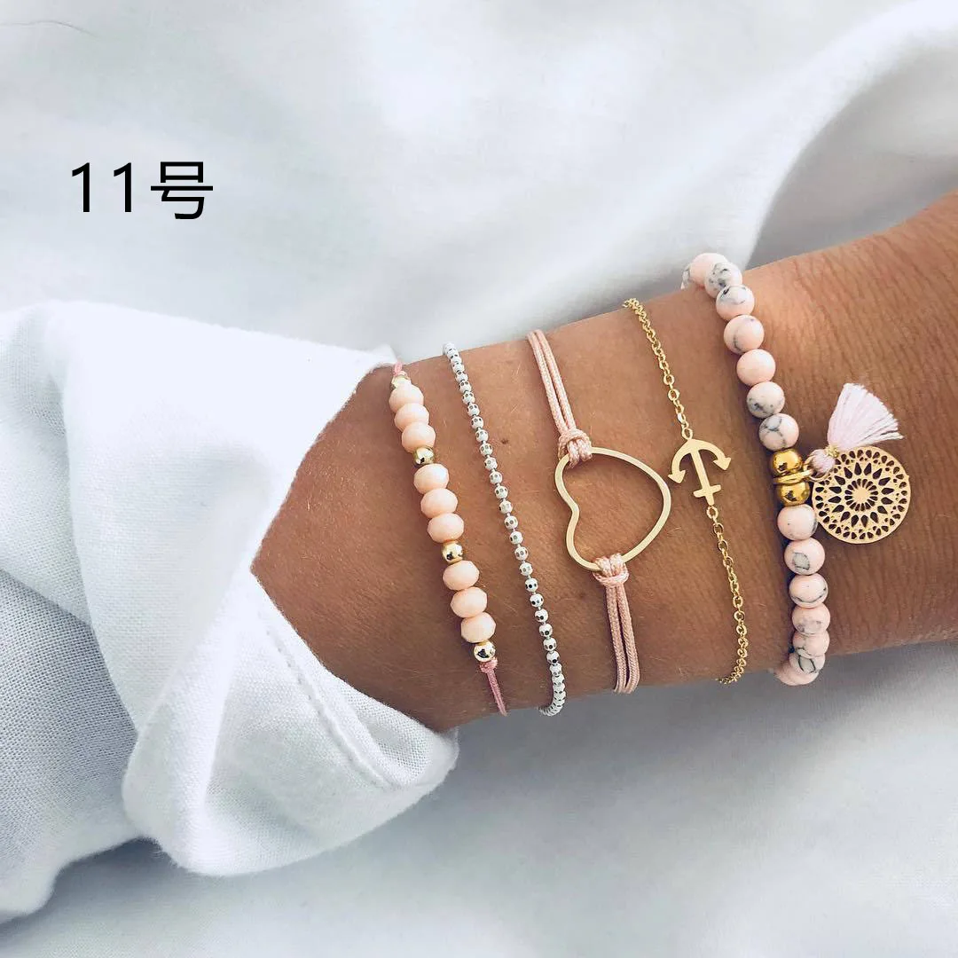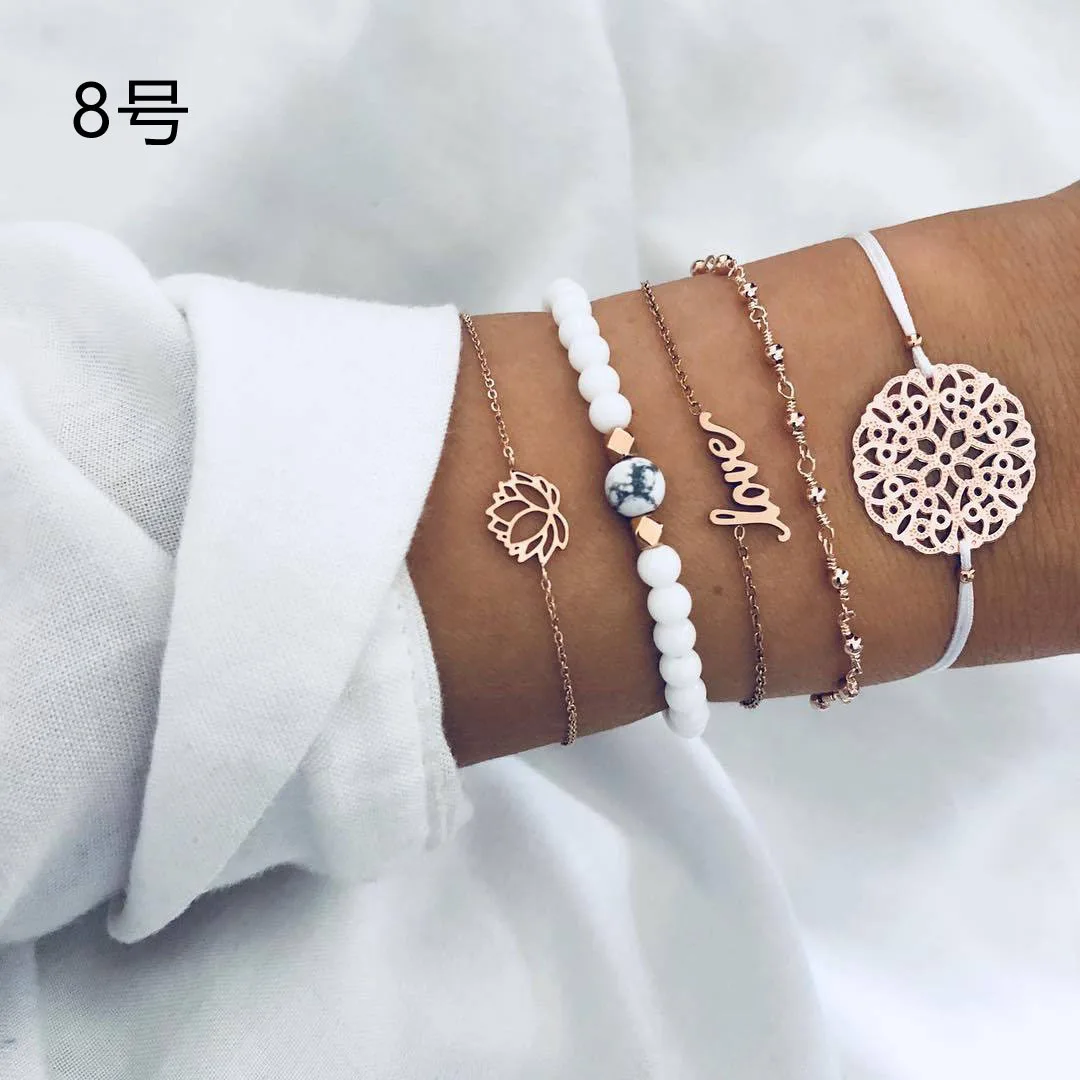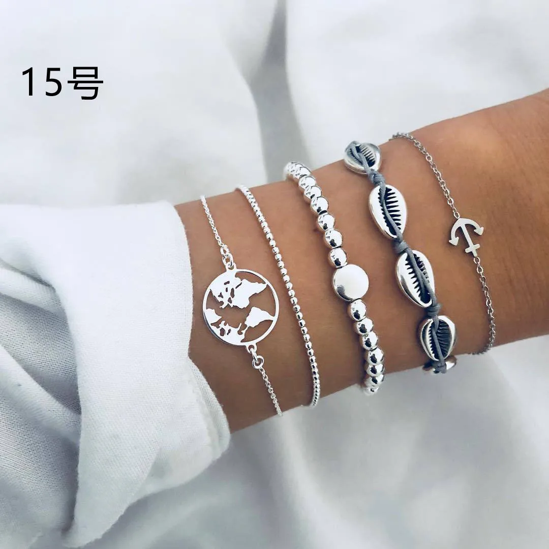 Браслет женский в стиле бохо, 21 стиль, 5 шт. в наборе, цепочка с шармами и жемчугом, с кристаллами, оптовая продажа браслетов и украшений