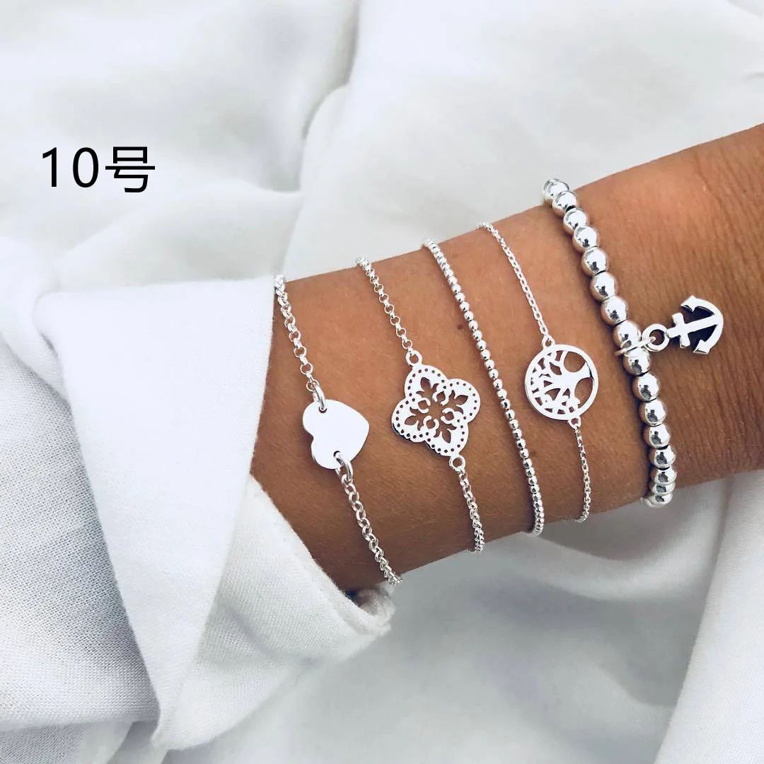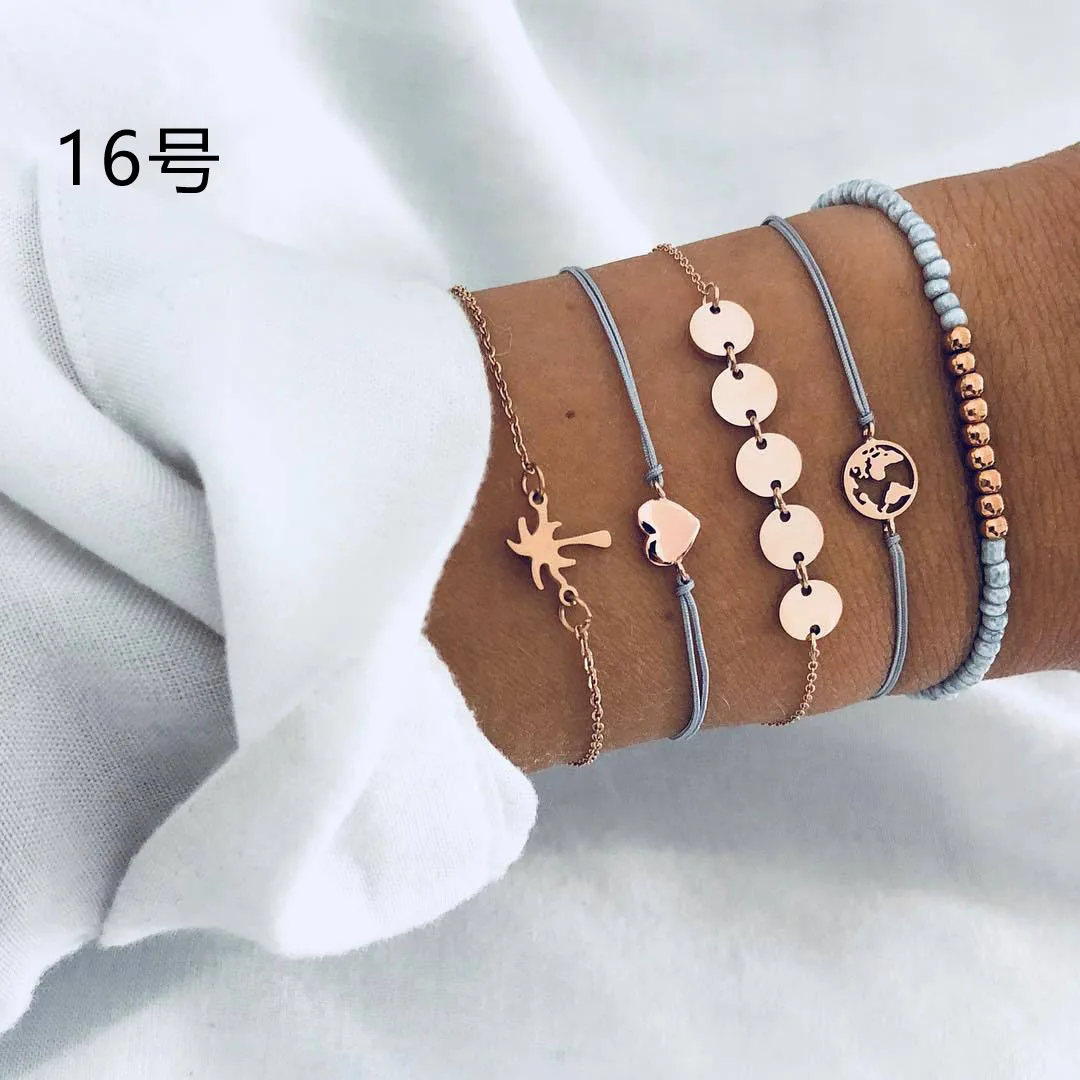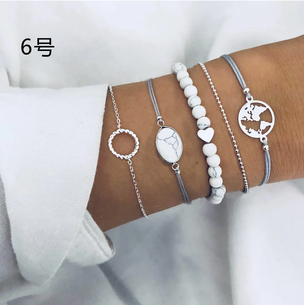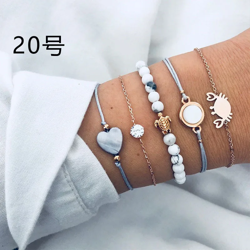 Браслет женский в стиле бохо, 21 стиль, 5 шт. в наборе, цепочка с шармами и жемчугом, с кристаллами, оптовая продажа браслетов и украшений