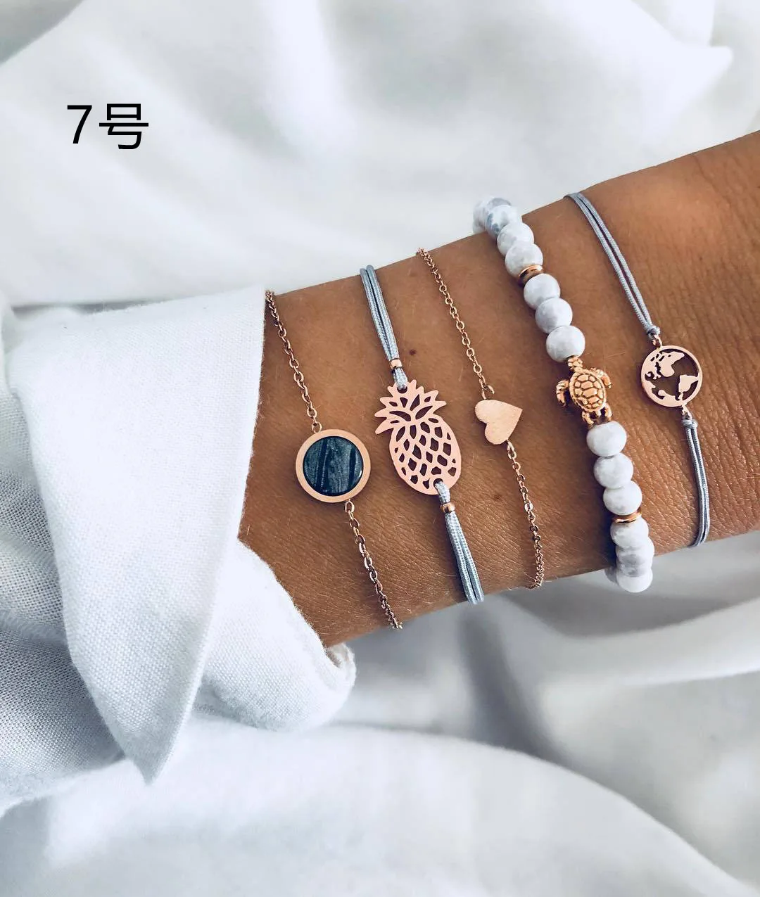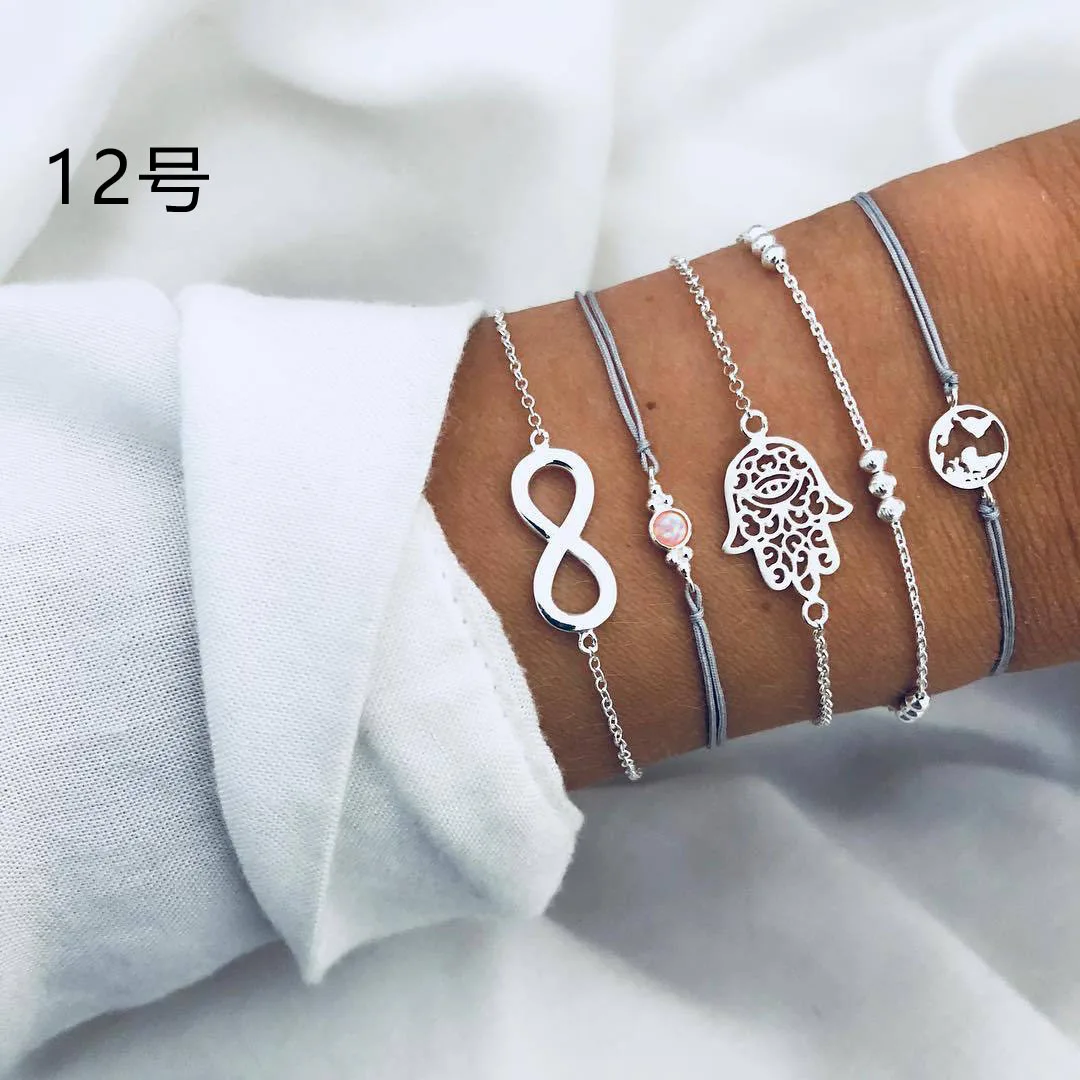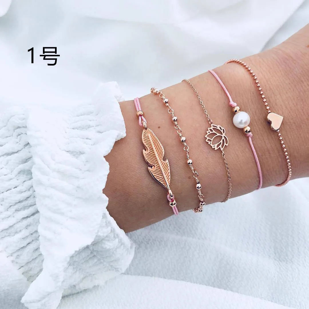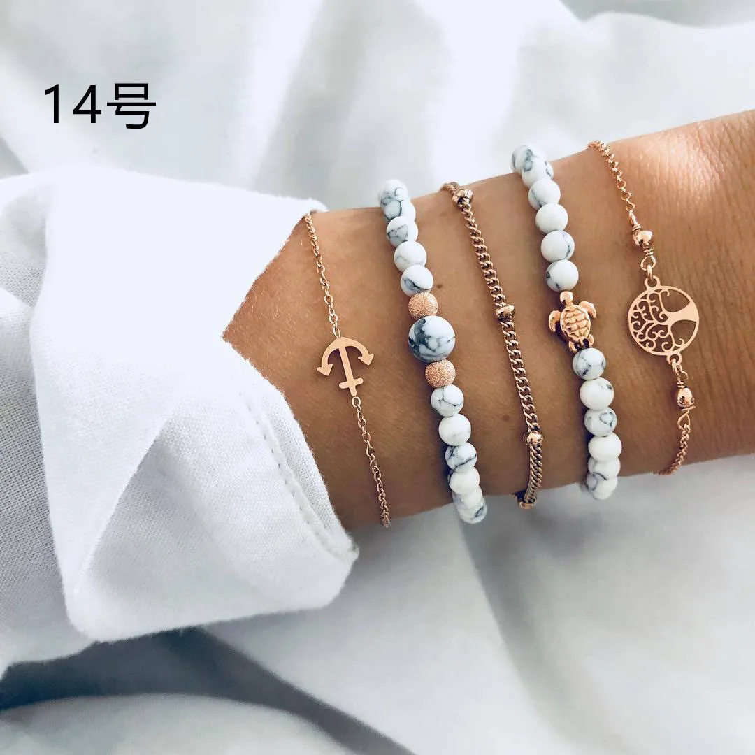 Браслет женский в стиле бохо, 21 стиль, 5 шт. в наборе, цепочка с шармами и жемчугом, с кристаллами, оптовая продажа браслетов и украшений