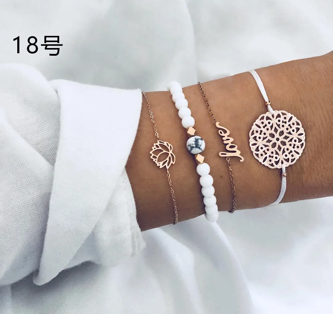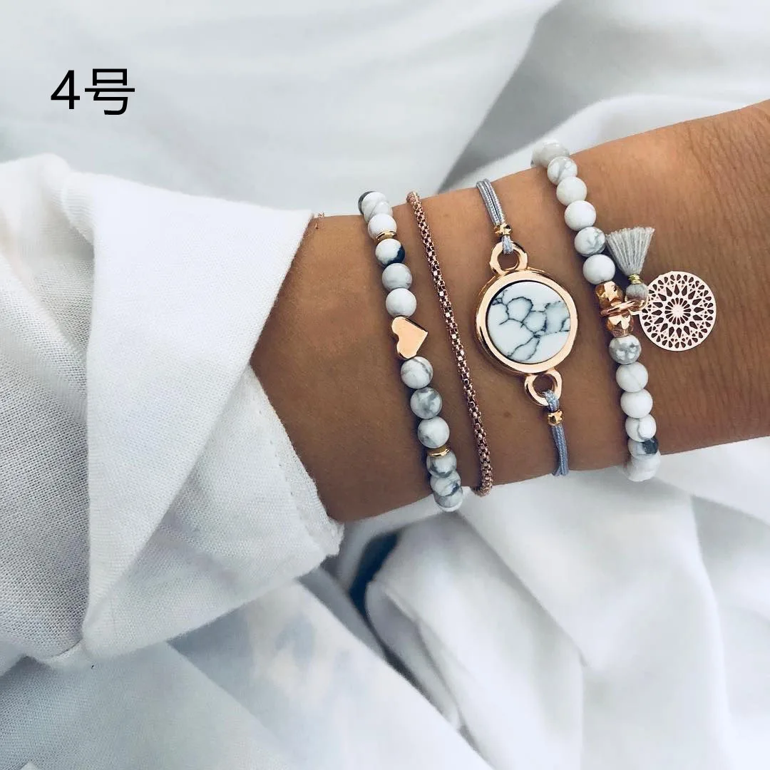 4 шт.компл. набор женских браслетов из цепочек с бусинами в богемно...