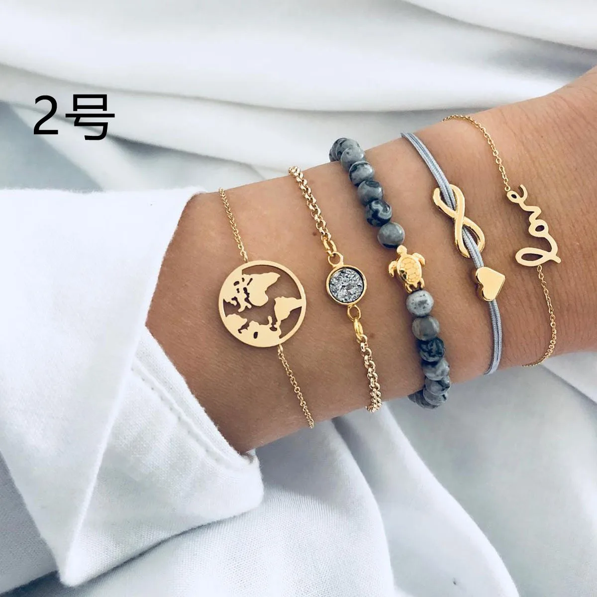45 шт. Набор браслетов в богемном стиле с картой черепахи любви, ми...