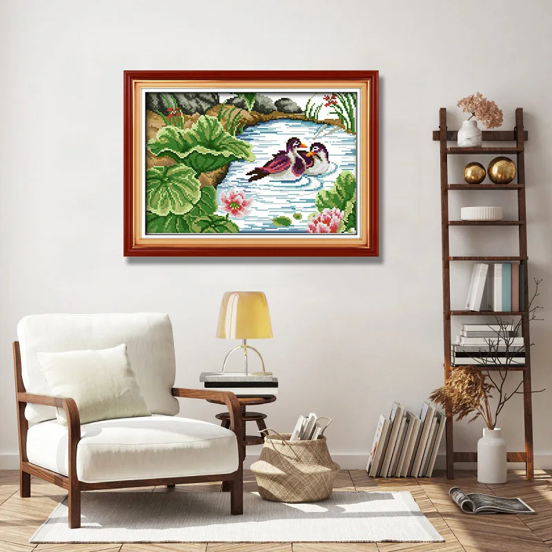 Мандарин утка в лотоса пруд крестиком набор продажа Aida Вышивка Рукоделие Набор DIY аксессуары ручной работы ремесла