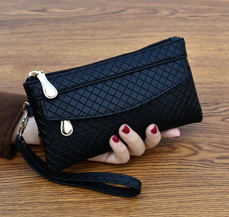 Клатч-органайзер, женский кошелек, клетчатая сумка для монет на молнии, повседневный женский кошелек, натуральная кожа