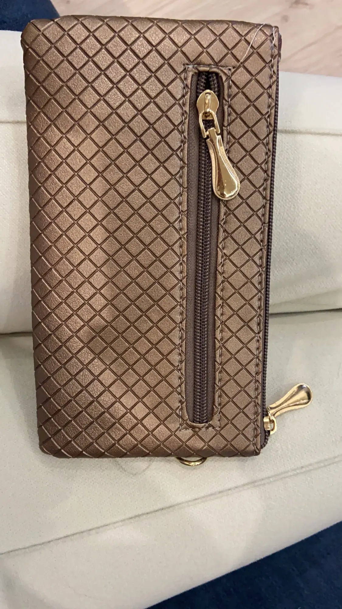 цвет не такой как на фото, в реале золотистый, самый некрасивый из золотистых оттенков. сделан неплохо, функциональный, но широковат для меня, я рассчитывала его как кошелек использовать. доставка больше месяца.