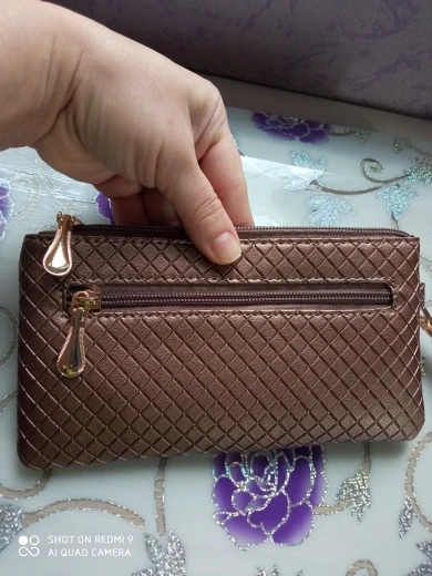 Красивый цвет, просторный кошелёк, два отделения снаружи на молниях, внутри два отделения, а между ними отделение на молнии. Лёгкий, мягкий. Отделений для карточек нет. Приятный подарок внутри - защитный RFID чехол. Спасибо продавцу!!
