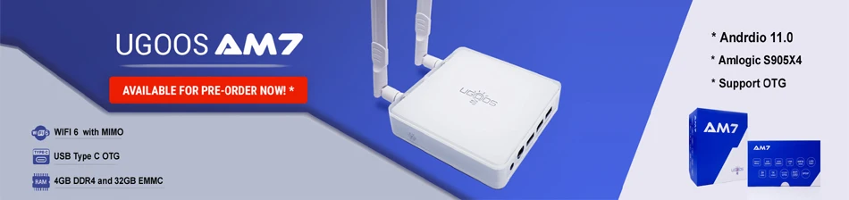 Приставка Смарт-ТВ UGOOS AM6B Plus, Android 9,0, 4 + 32 ГБ, 2,4 ГГц