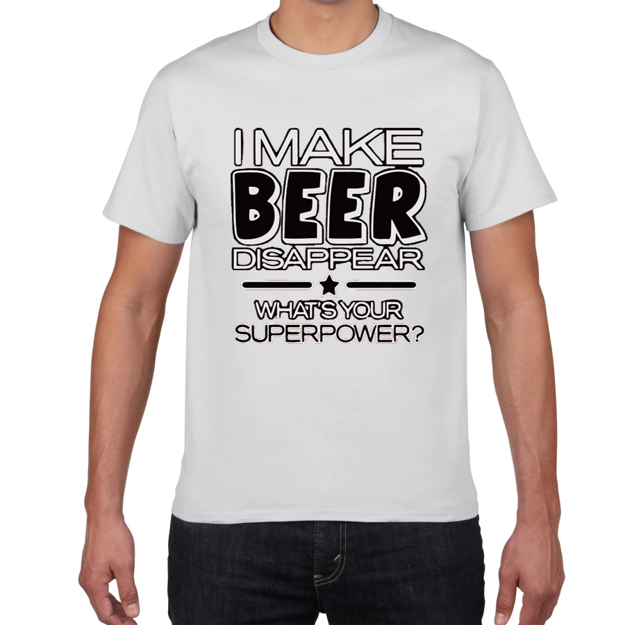 Забавная футболка с надписью I Make Beer исчезает, Мужская Уличная футболка с надписью What's Your Superpower, Мужская хлопковая футболка в стиле Харадзюку