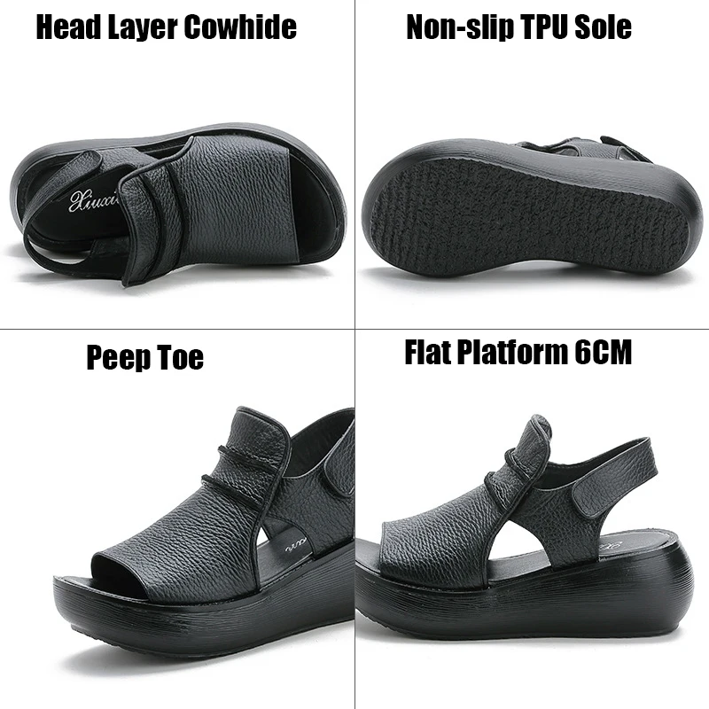 Сандалии OUKAHUI женские на платформе и толстой подошве, модные босоножки из натуральной коровьей кожи на танкетке, с открытым носком, лето 2020