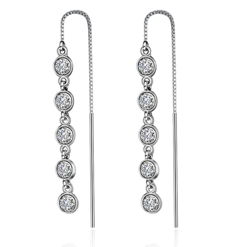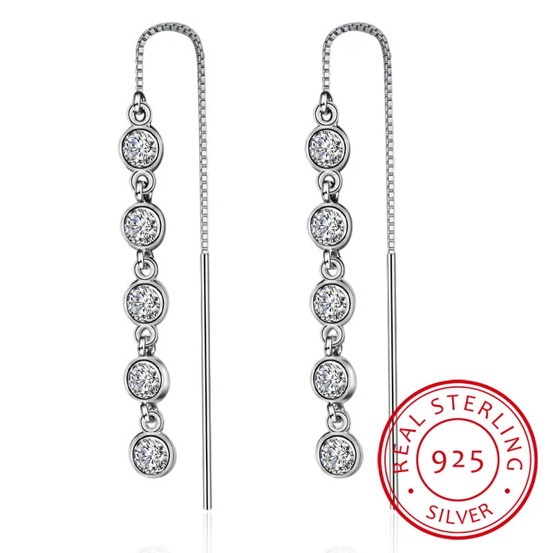 Роскошные серьги из стерлингового серебра 925 пробы, геометрические длинные кисточки, круг, ААА Цирконий, кристалл, капли для женщин, стерлингового серебра, ювелирные изделия