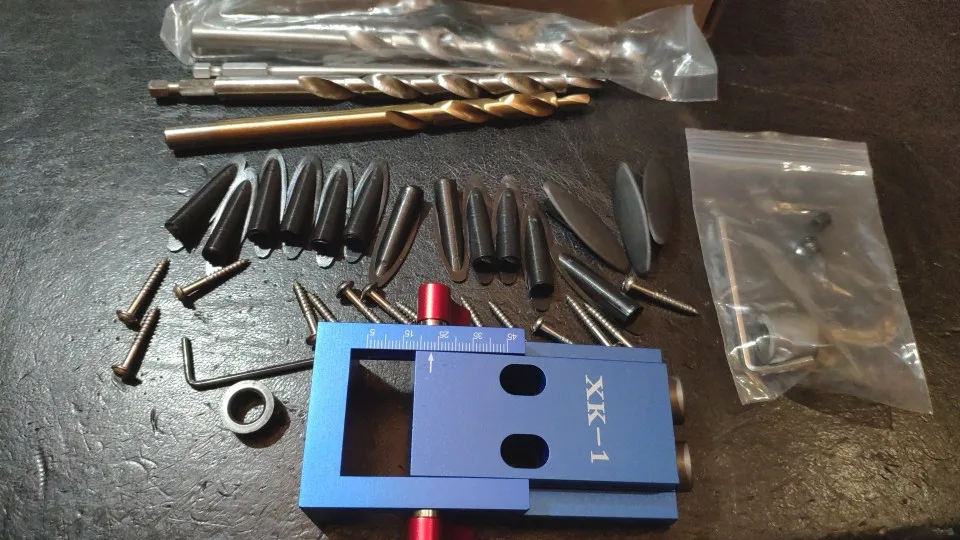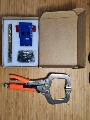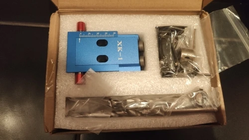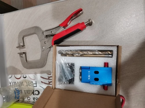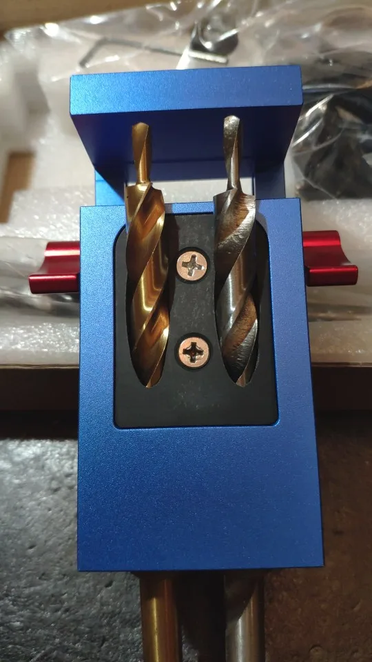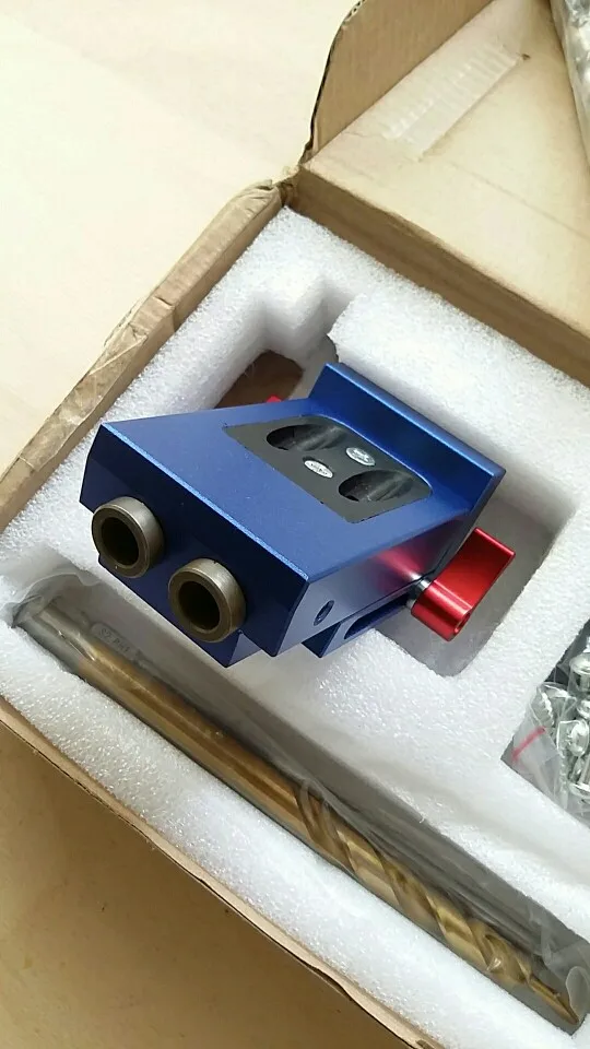 начну с того, что поражен скоростью доставки - 6 дней до Санкт-Петербурга. Сам товар полностью соответствует описанию, качество анодирования хорошее, сверла имеют правильную заточку. Люфт в направляющей 1,5 десятки мм, что очень хорошо. Не могу утверждать но гильзы для сверла вроде сталь, не захотел портить покрытие, конструктивно добавлены отверстия для удаления стружки. Струбцина с четким механизмом фиксации, держит хорошо, винт ограничения ходит туго. В целом очень доволен, рекомендую продавца и это приспособления на "косой шуруп".