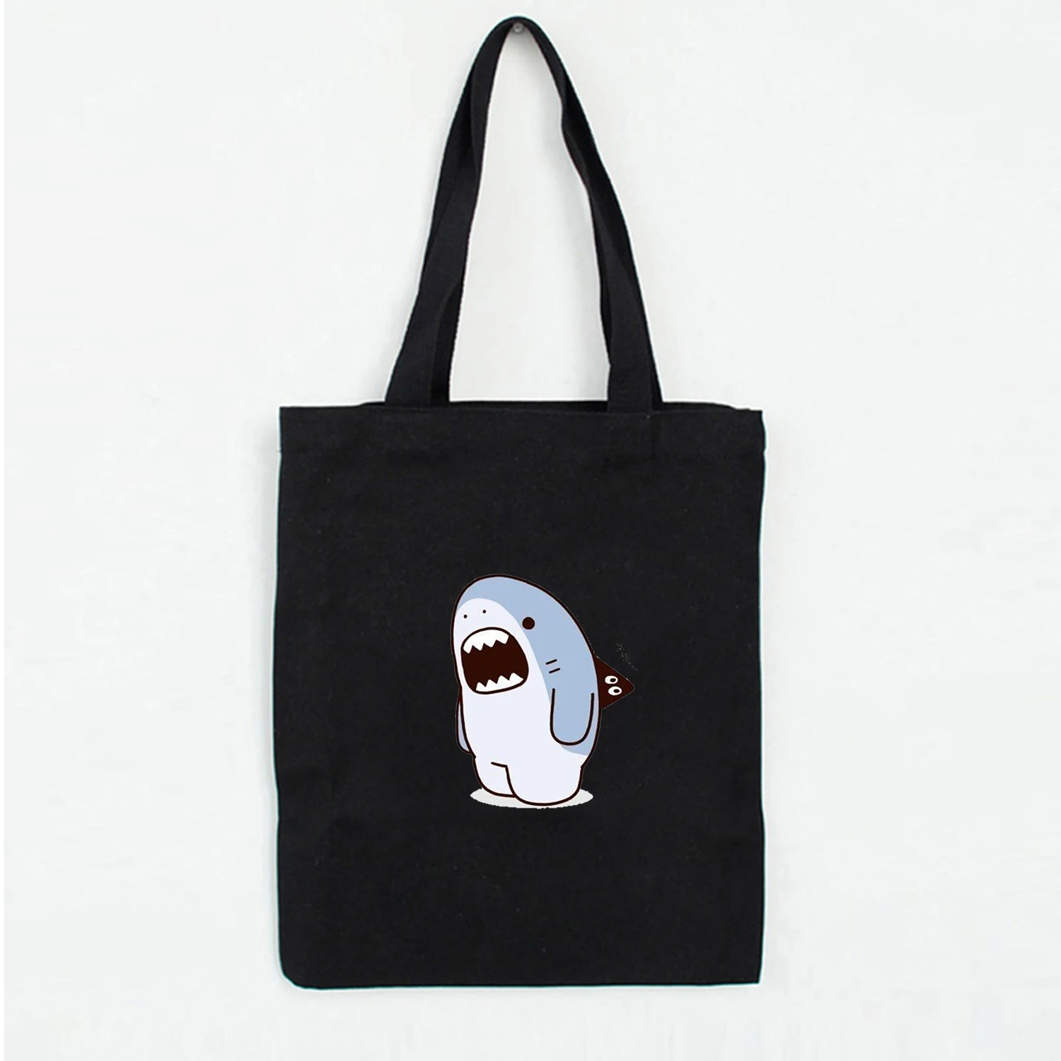 Новая пляжная женская сумка-тоут с изображением акулы из ткани с мультипликационным принтом, Женская эко-сумка, Большая складная Наплечная многоразовая сумка-шоппер, Прямая поставка