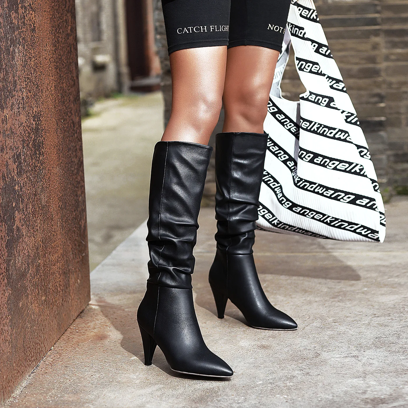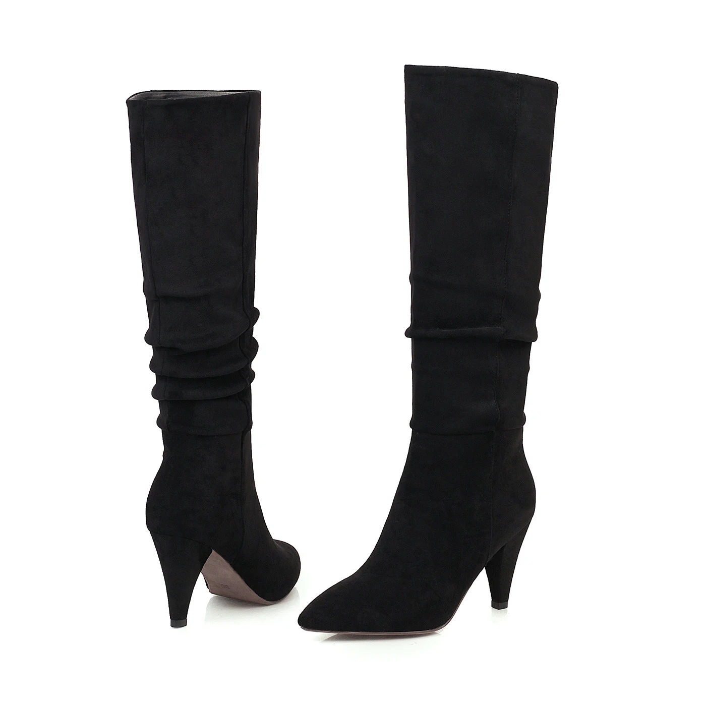 Женские ковбойские сапоги до колена, зимние высокие сапоги со складками, с острым носком, на каблуке, женские ковбойские ботинки