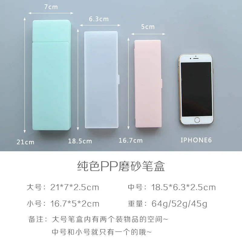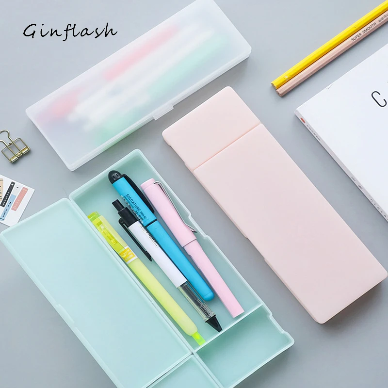 Простой Прозрачный чехол для карандашей Ginflash, 1 шт., матовый пластик, розовые, зеленые, белые ручки, коробка для хранения канцтоваров дюйма, держатель, 3 размера