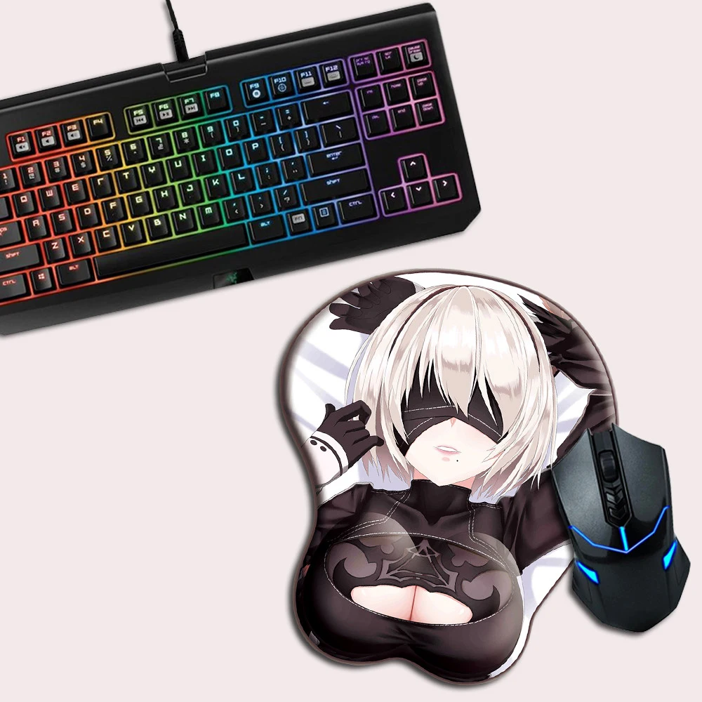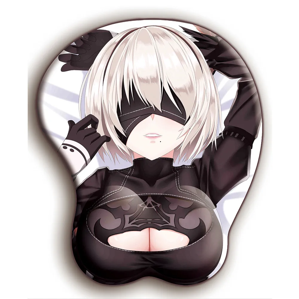 FFFAS NieR:Automata 2B игровой 3D коврик для мыши с нижней частью груди, коврик для мыши с силиконовым гелем, Размер подставки для запястья, помогающий переносить коврик для мыши