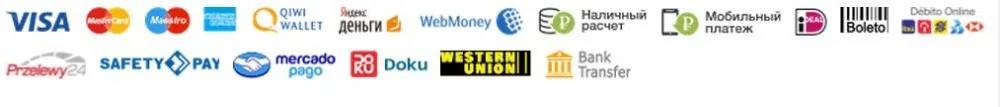 Мы поддерживаем следующие способы оплаты. Все оплаты выполненные на AliExpress обрабатываются сервисом Alipay.