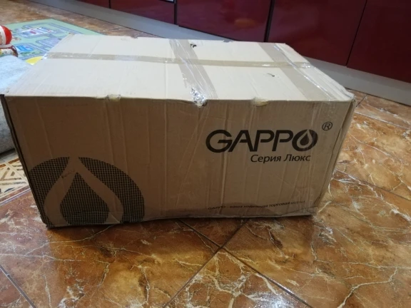 Доставка ровно 2 месяца и 2 дня в Киев, учитывая новогодние праздники. Долго ехало по территории Китая, даже думала, что потерялось. Но продавец на мой вопрос ответил, что все в порядке и нужно подождать.Доставка Meest, привезли домой, все упаковано хорошо, ничего не помято. Порадовало качество, все упаковано в отдельные коробочки, мелкие элементы обмотаны дополнительно бумагой. Выглядит очень достойно! Везде есть логотип «Gappo”.Есть небольшая вмятина на стыке шва на лейке верхнего душа( последнее фото во вложении), но ее не видно будет. Я очень довольна ценой и качеством- брала с отличной скидкой. Пока не устанавливали. Надеюсь, прослужит долго. Планирую выбрать еще смеситель в пару.Спасибо продавцу!