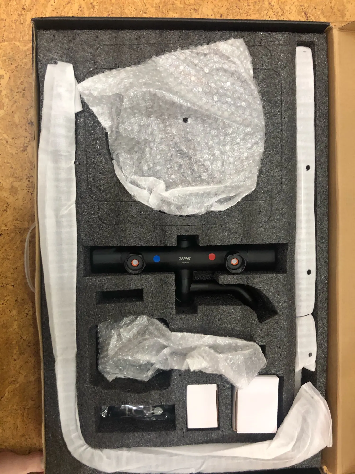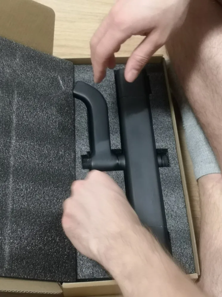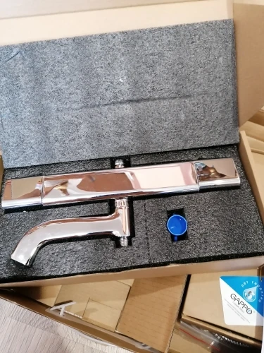 Термостат работает в целом стабильно, жёстких перепадов, как были ранее с простым смесителем, больше нет. Черный матовый цвет очень красивый, но слой действительно тонкий и при установке можно случайно поцарапать. В остальном без нареканий. Доставка за неделю