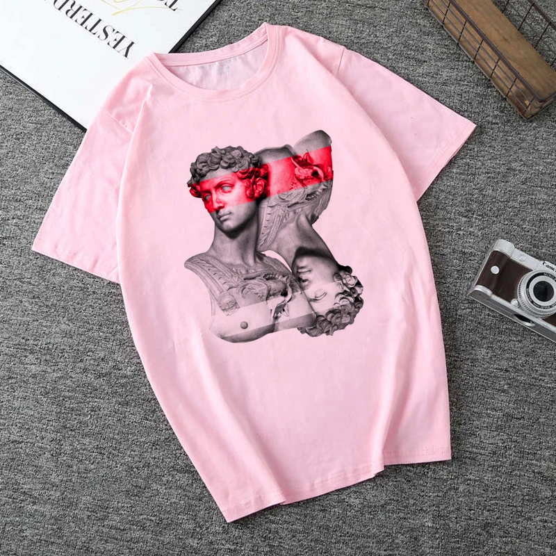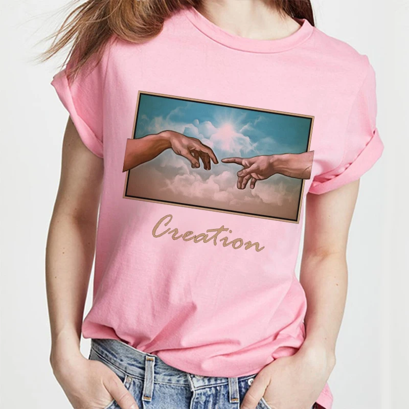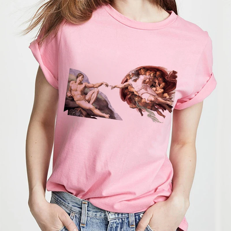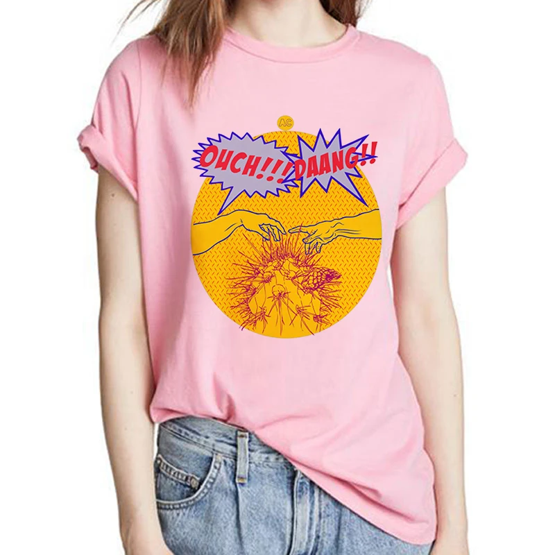 Футболка женская летняя с забавным графическим принтом Микеланджело, повседневный топ с коротким рукавом, уличная одежда в Корейском стиле, в стиле Харадзюку