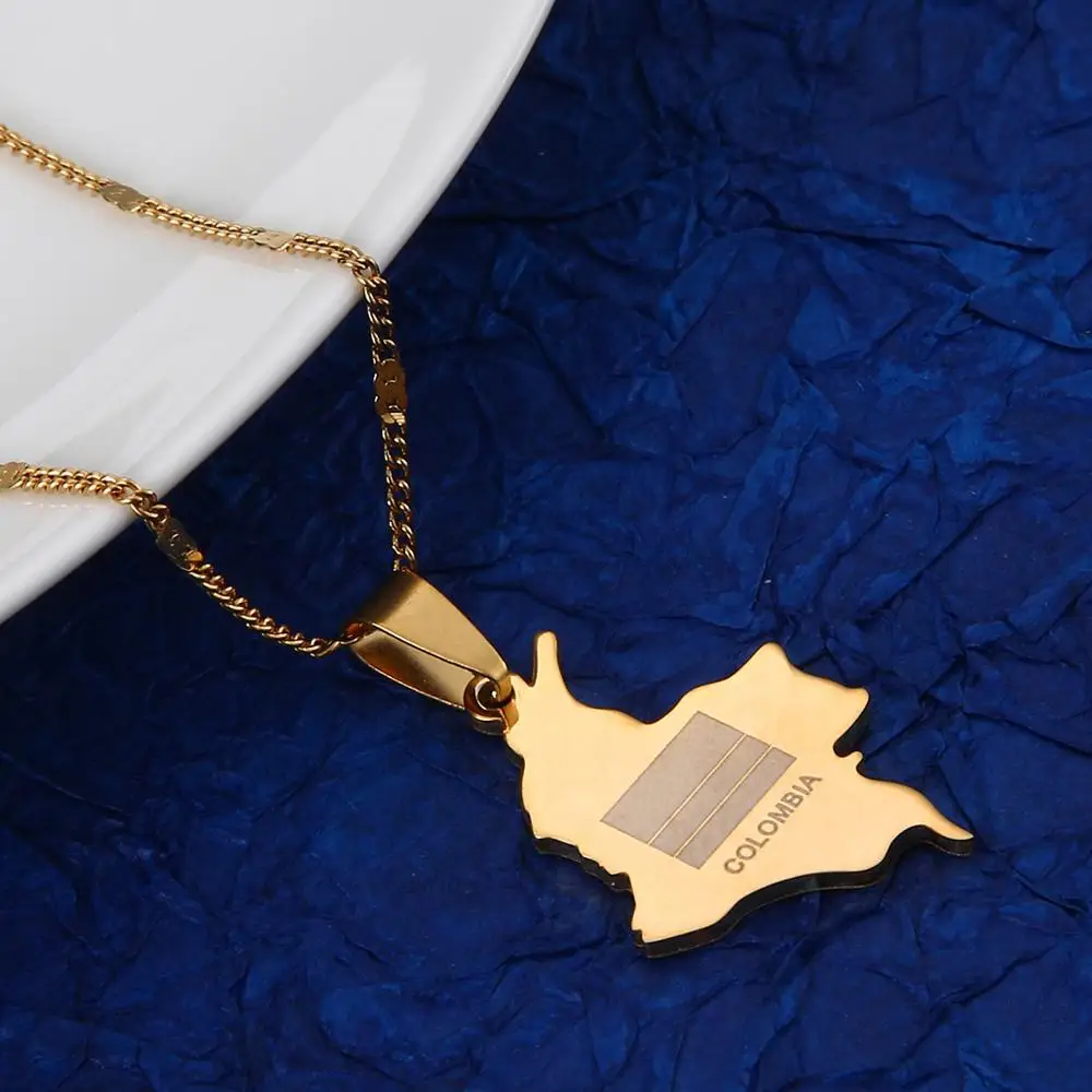 Ожерелье с подвеской из нержавеющей стали с изображением карты Колумбии, модная карта колумбийской цепи, ювелирные изделия
