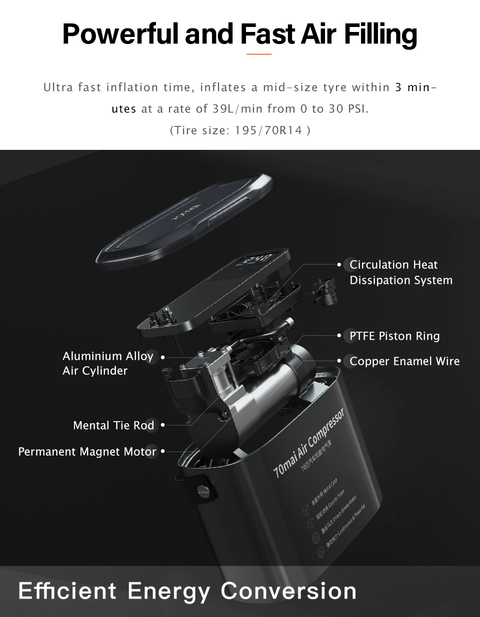 Автомобильный воздушный компрессор 70mai, 12 В, Электрический автомобильный воздушный насос 70mai, насос для шин автомобиля, велосипеда, Pumb, мотоцикла