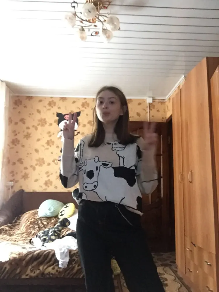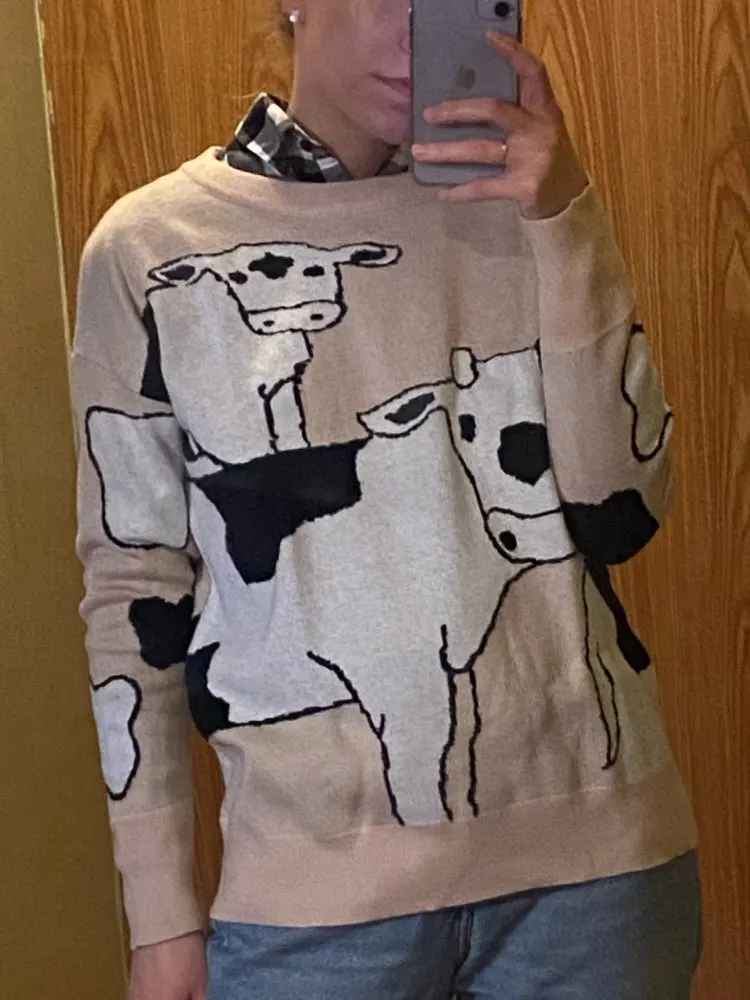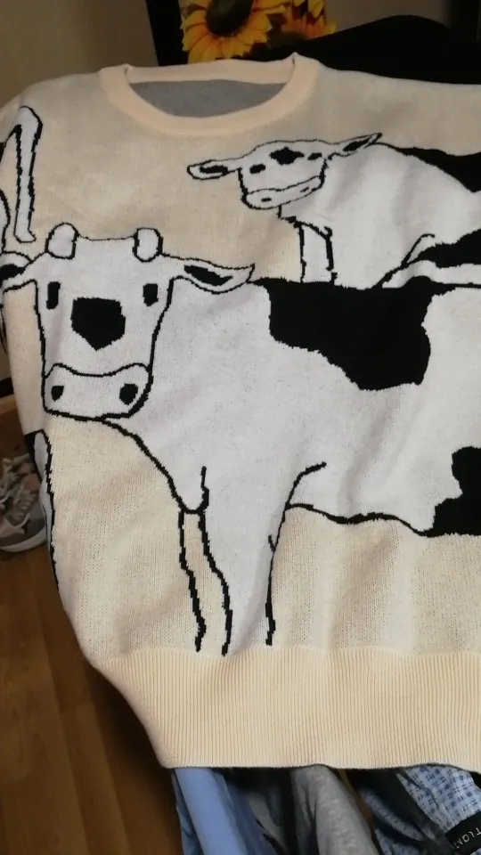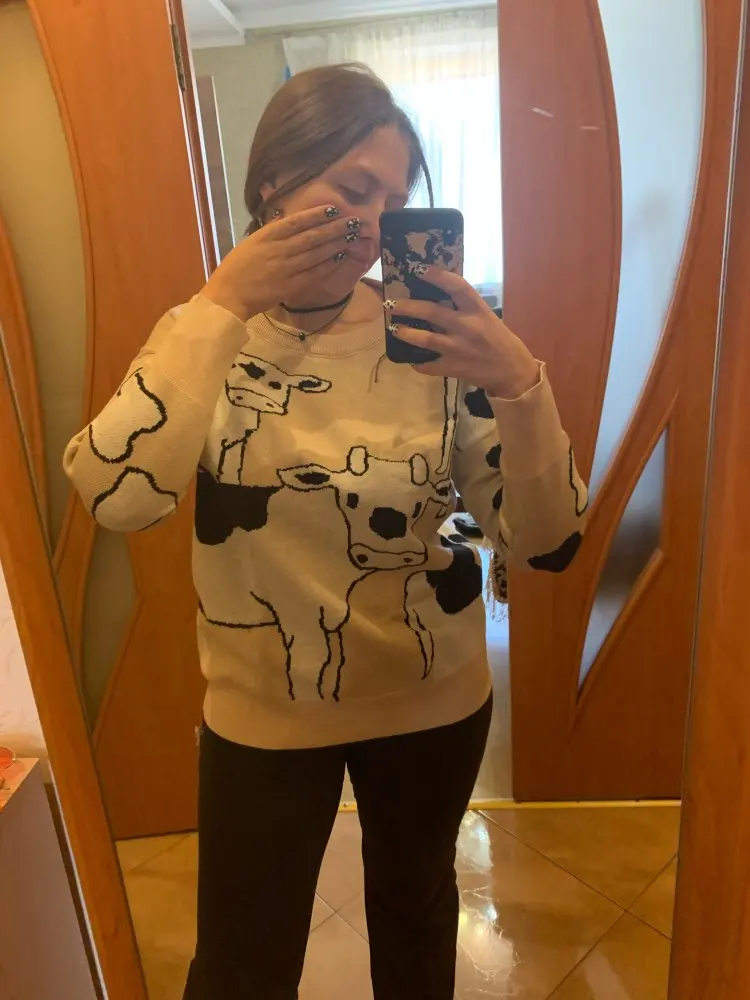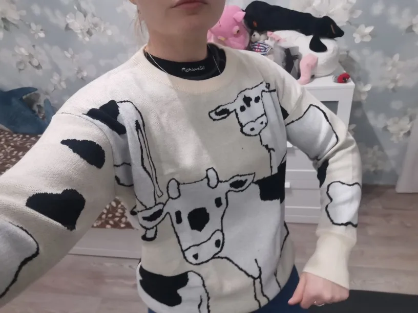 это лучший свитер, который я когда-либо видела!!! мягкий, оверсайз и с коровками!!