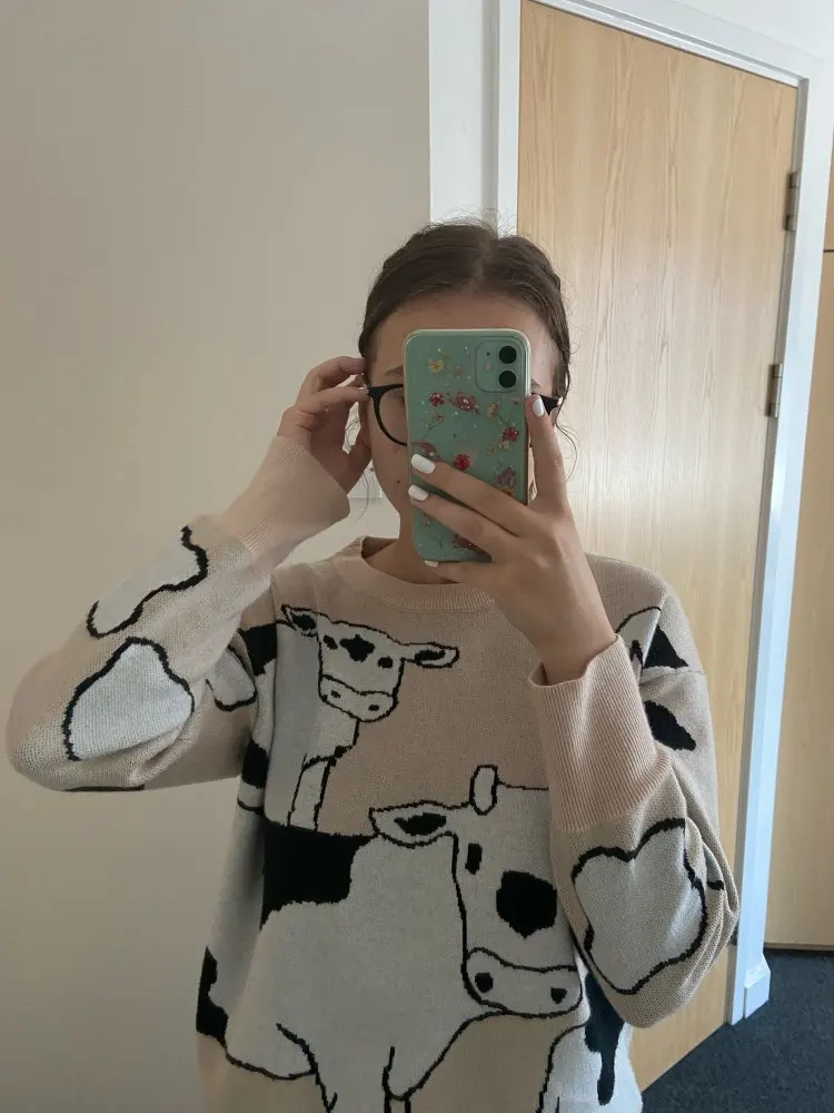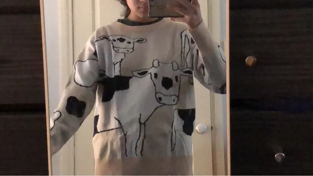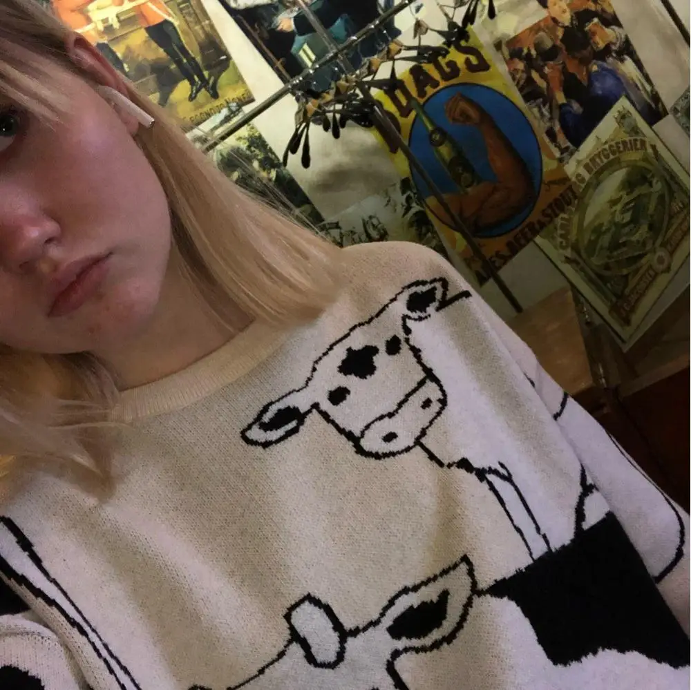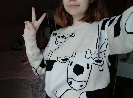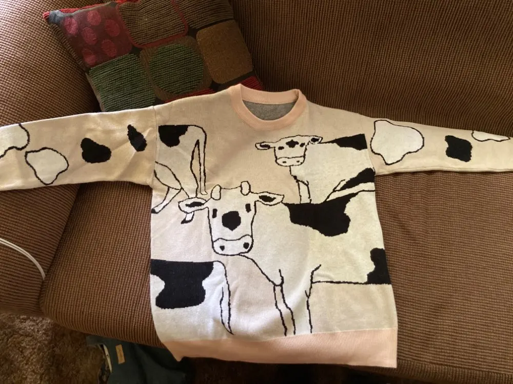 это лучший свитер, который я когда-либо видела!!! мягкий, оверсайз и с коровками!!