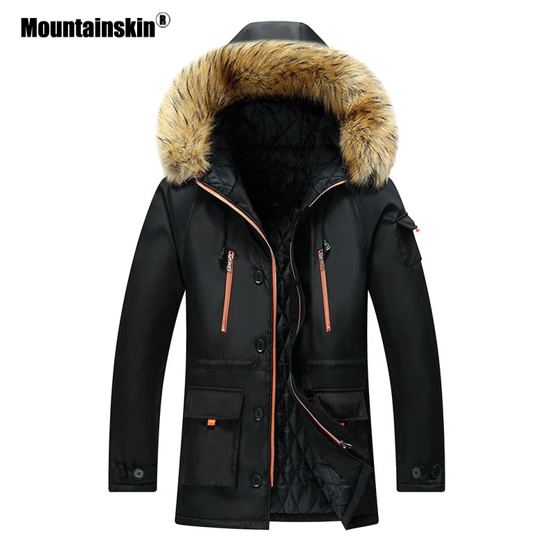 Мужская куртка-парка из горной кожи, Зимняя Теплая мужская куртка с капюшоном и меховым воротником, повседневная мужская куртка с подкладкой, брендовая одежда 7XL 8XL SA829