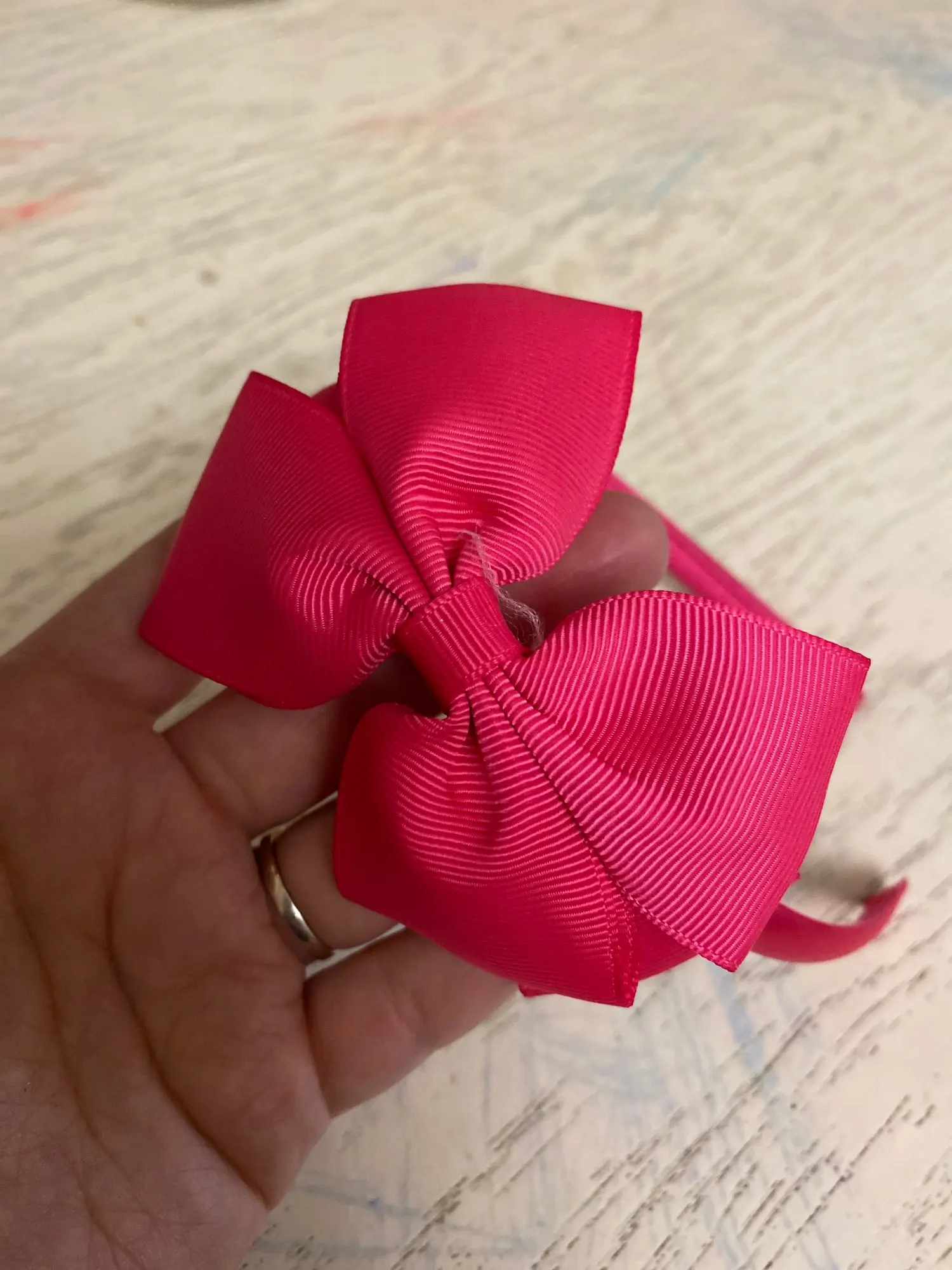 Cute hair band, slightly big for my 3 years old girl, but she loves it. Just as described. Considering buying one more. Arrived within 2.5 weeks.