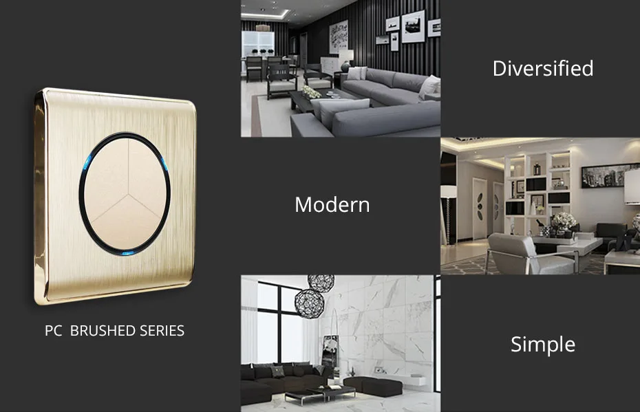 Wallpad Gold L6 1 Gang светильник Switch 1 Way 2 Way Матовая атласн...