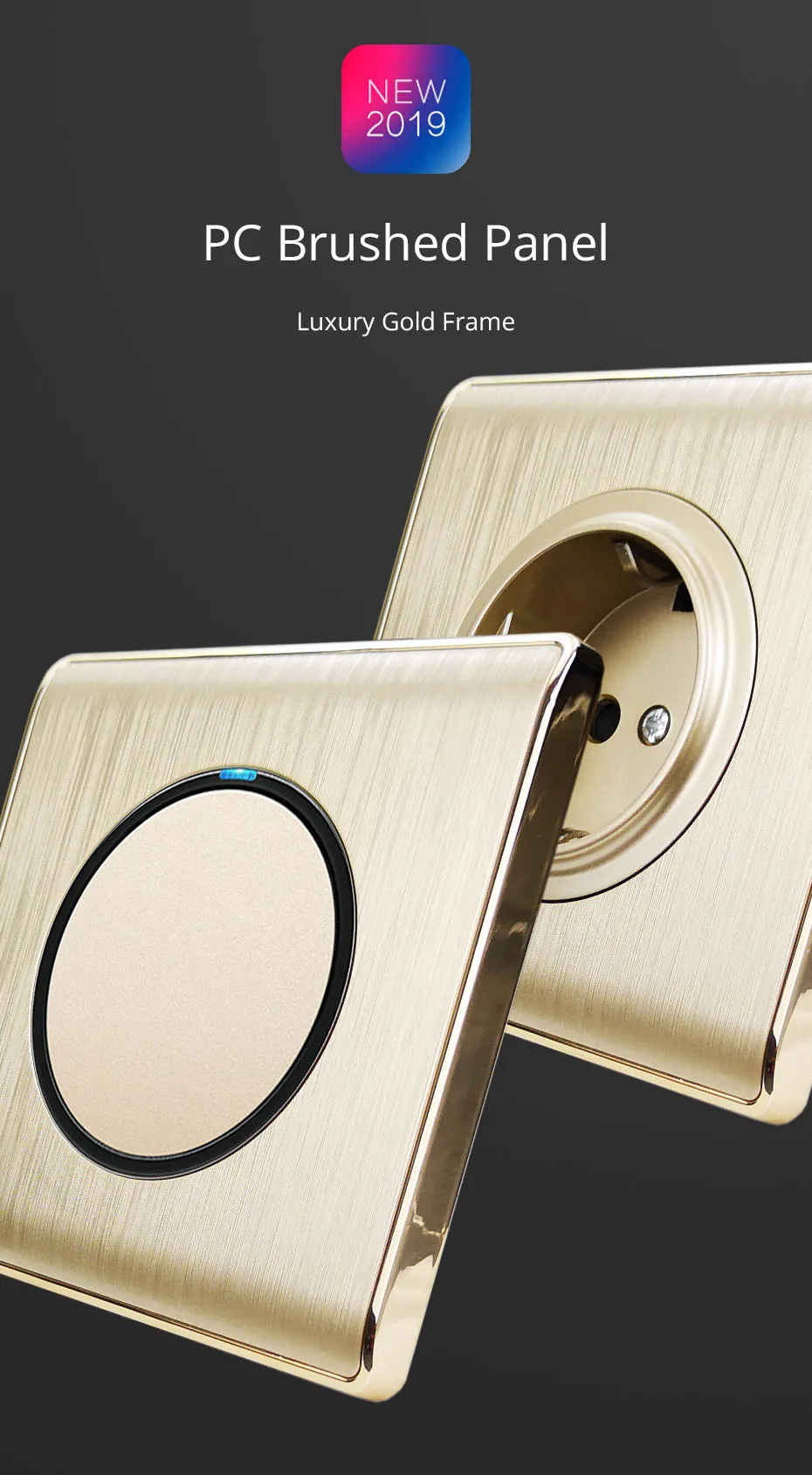 Европейская французская настенная розетка Wallpad, электрическая розетка, золотая матовая панель из поликарбоната для дома