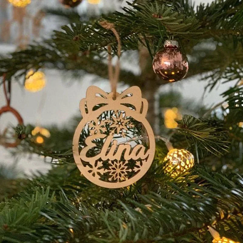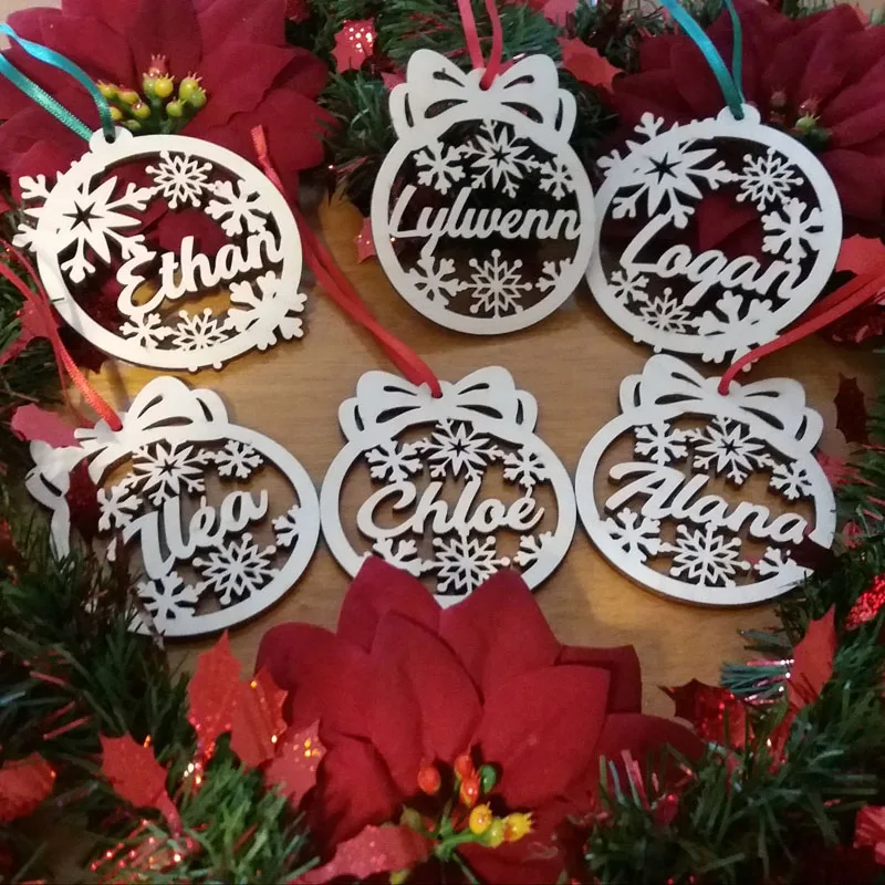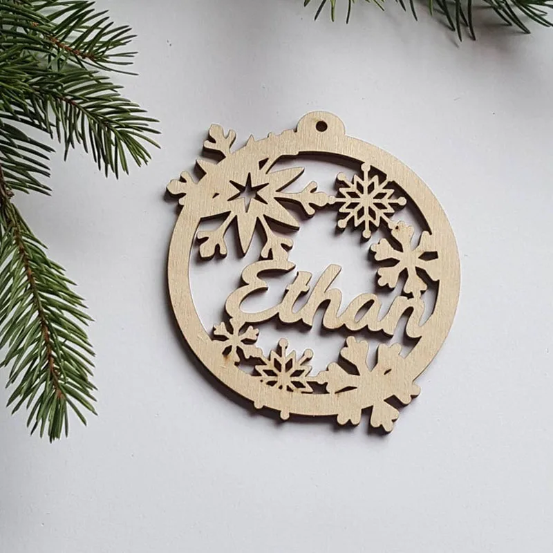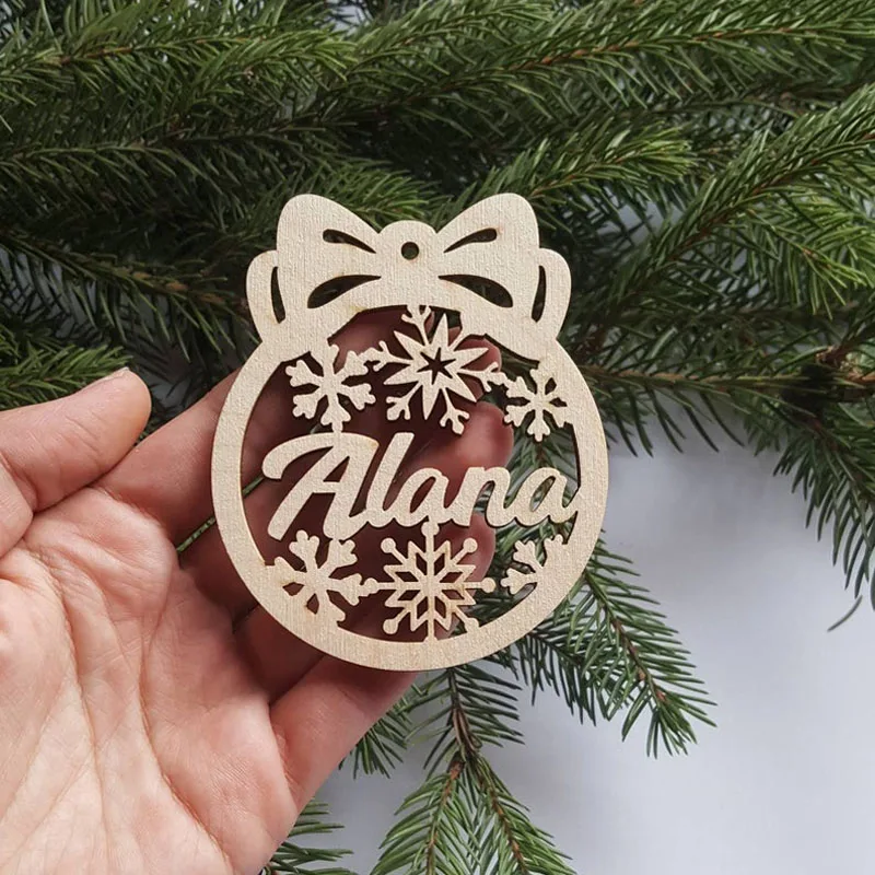 Деревянные рождественские шары, персонализированное украшение с именем, искусственное украшение, индивидуальный Рождественский подарок