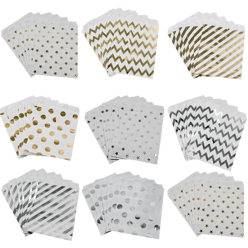 Пакеты для еды розового, золотого, серебряного цвета в горошек со з...