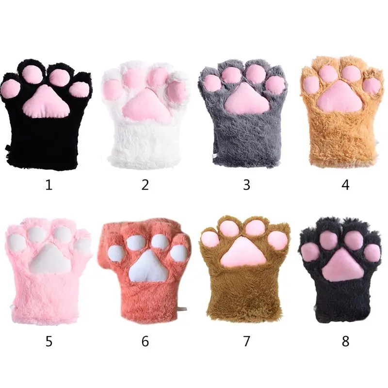 Женские перчатки с милой кошачьей лапой, Зимние теплые плюшевые Мультяшные Аниме Косплей рукавицы