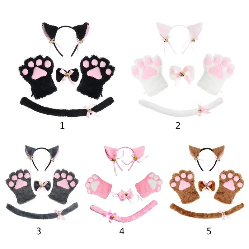 Женский костюм для косплея, плюшевая повязка на голову с повязкой-колокольчиком и бантом, ошейник-рукавицы-лапы в стиле аниме лолита