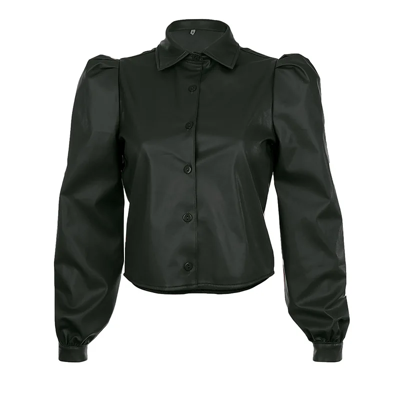 Женская рубашка ZHYMIHRET, из искусственной кожи, на пуговицах, с пышными рукавами, с отложным воротником, Осень-зима 2021