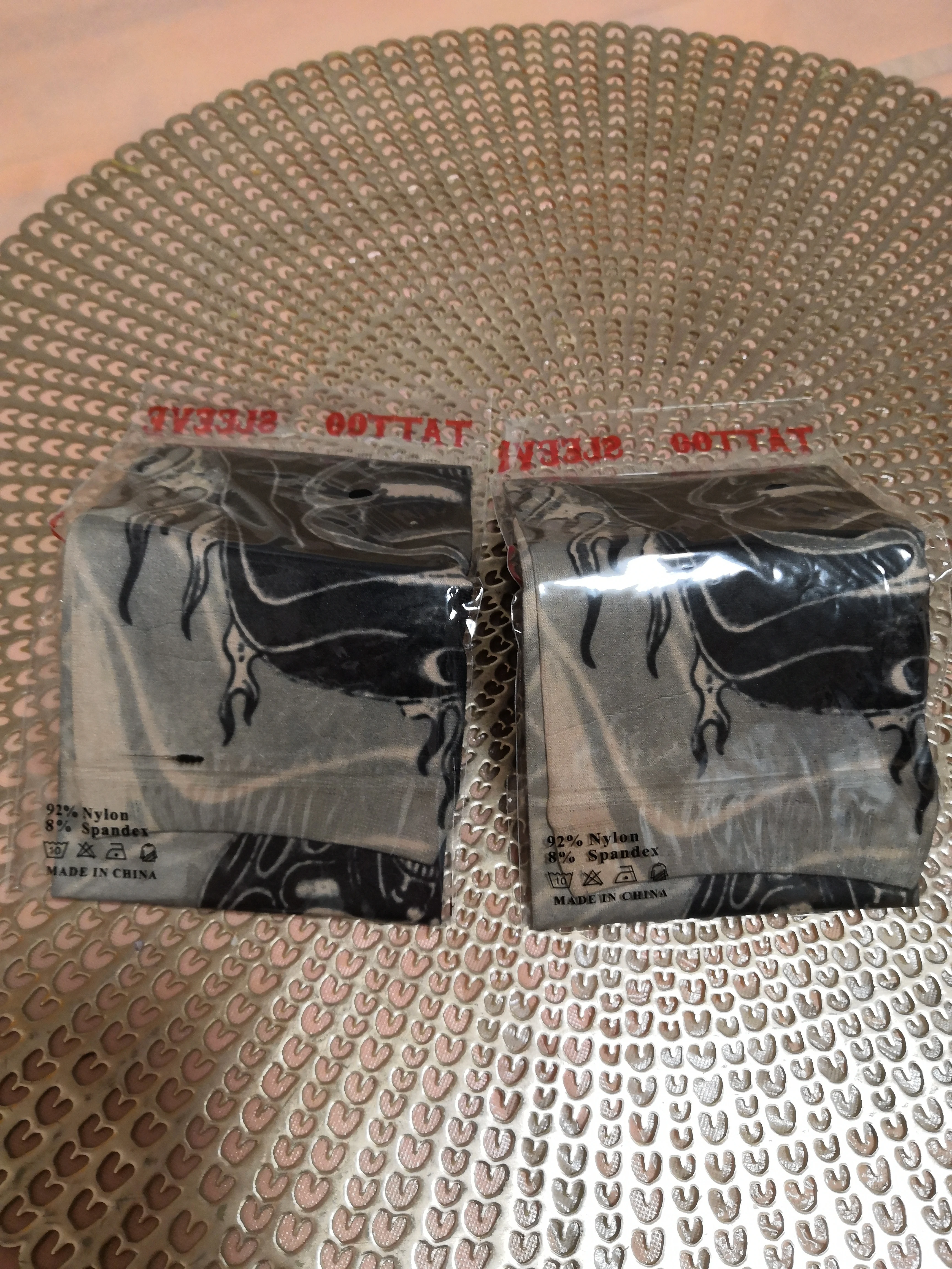 Рукава пришли по одной штуке. Качество печати и ткани отличное, но так как это спандекс, естественно они растягиваются и становятся не такими плотными. У меня худые руки, подошло. На крупные руки и тем более бицуху налезет с трудом, будет жать. В Украину за три недели
