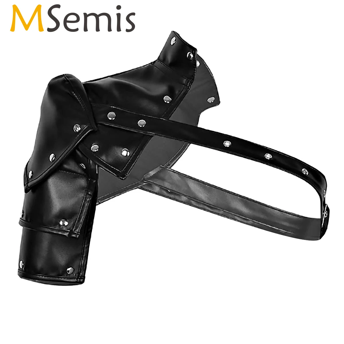 MSemis мужской средневековый бронежилет из искусственной кожи, бронежилет с заклепками, одно плечо, рука, нагрудный ремень для тела косплей костюм, аксессуары