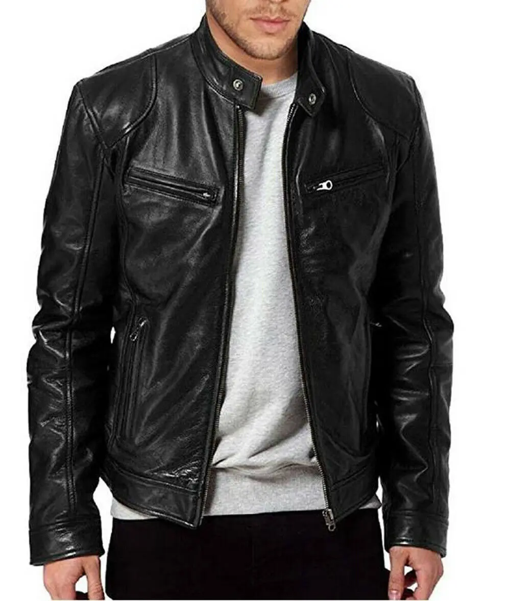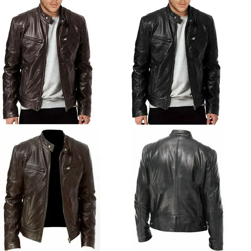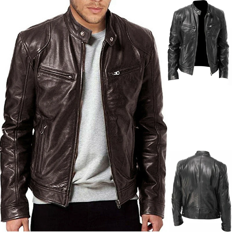 Куртка мужская кожаная, повседневная Байкерская мотоциклетная куртка, верхняя одежда, черный коричневый, осень 2020