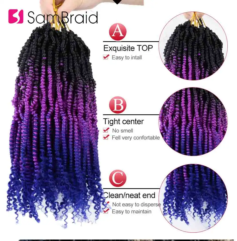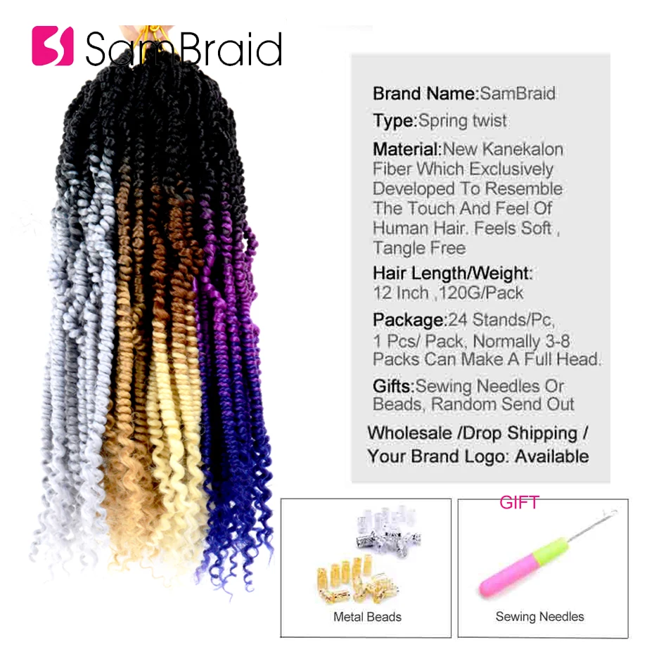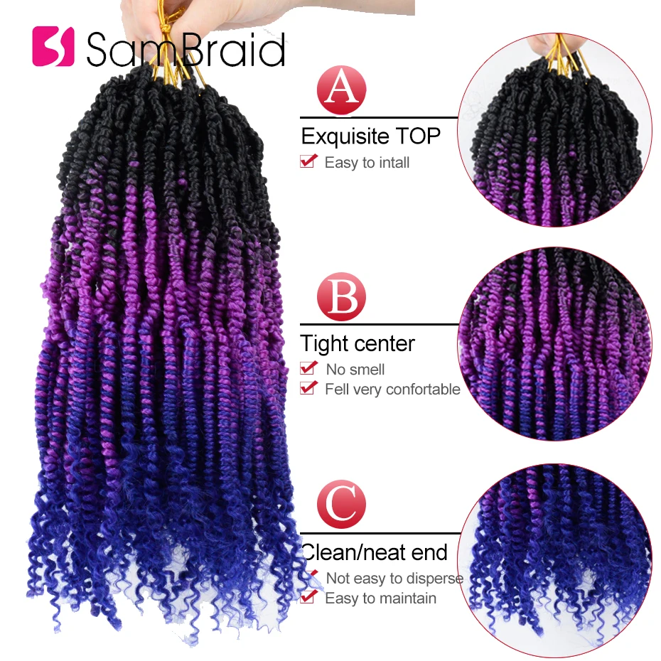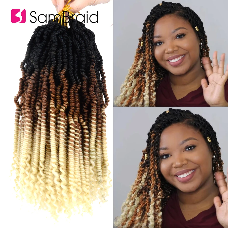 SAMBRAID 12 дюймов весенние страстные Омбре цвета бомба скрученные волосы для предварительно петля синтетический крючком плетеные волосы для женщин