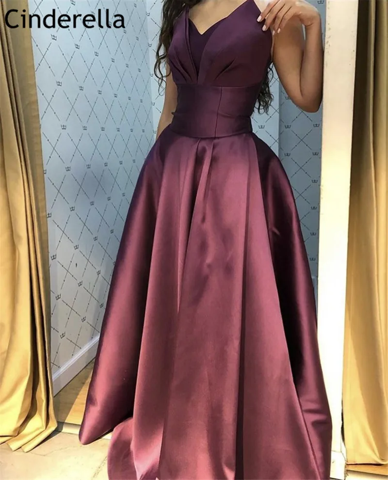 Платье женское атласное для выпускного вечера, фиолетовое ТРАПЕЦИЕВИДНОЕ с V-образным вырезом, с застежкой-молнией сзади
