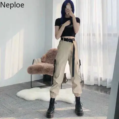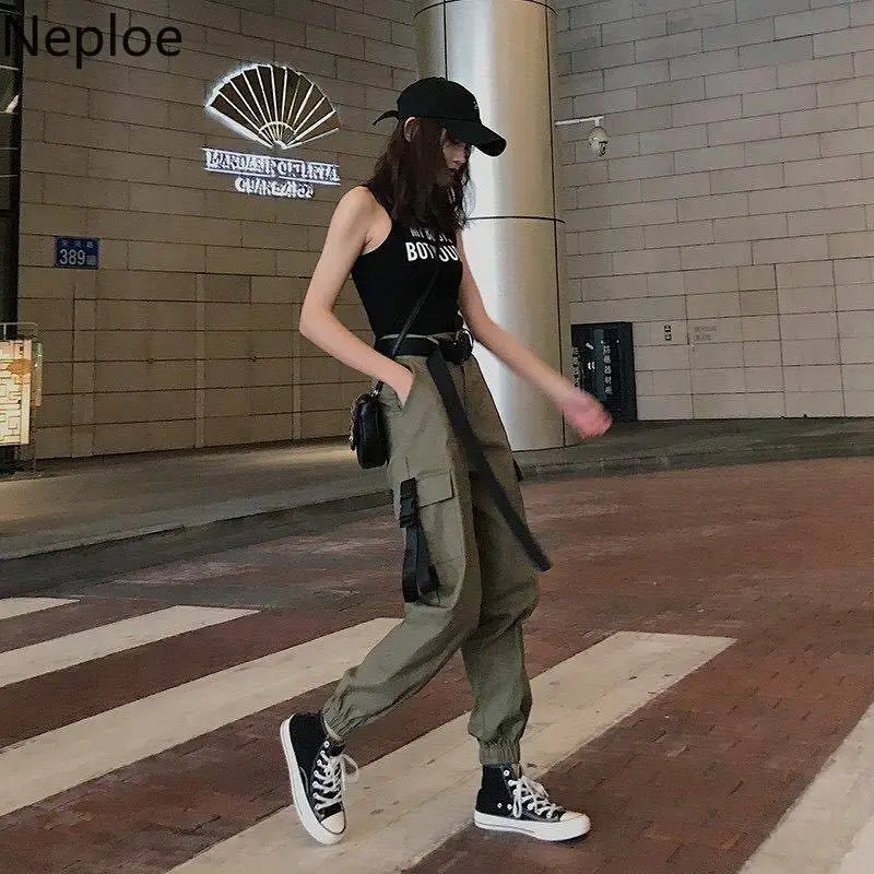 Женские брюки-карго в стиле Харадзюку, Свободные повседневные брюки с карманами и эластичной талией, шаровары длиной до щиколотки, 80451