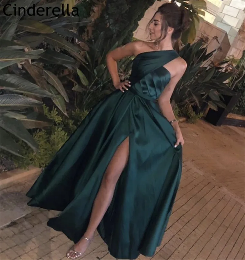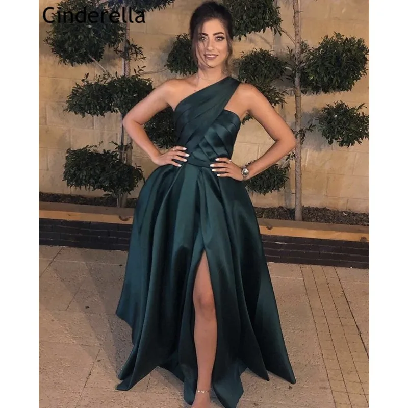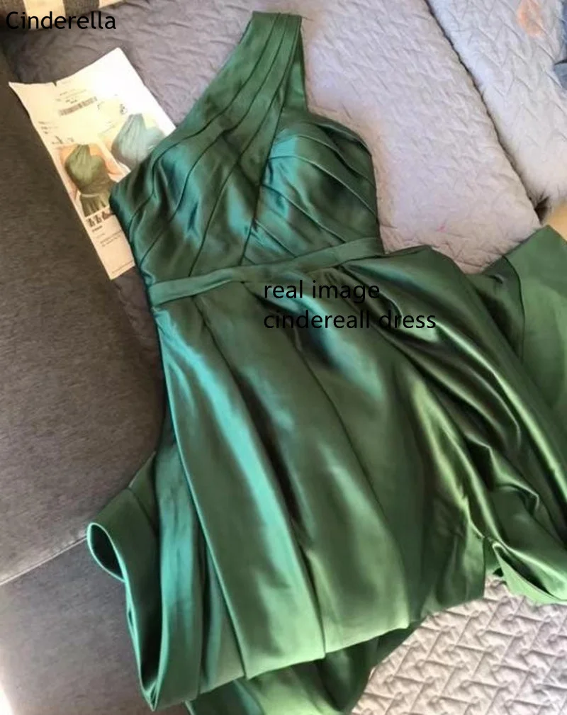 Зеленые платья для выпускного вечера на одно плечо с Боковым Разрез...