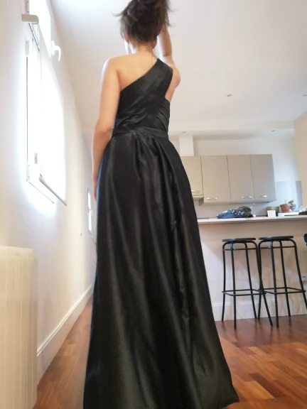 Вечернее платье с длинным шлейфом, одним рукавом, с длинными рукава...
